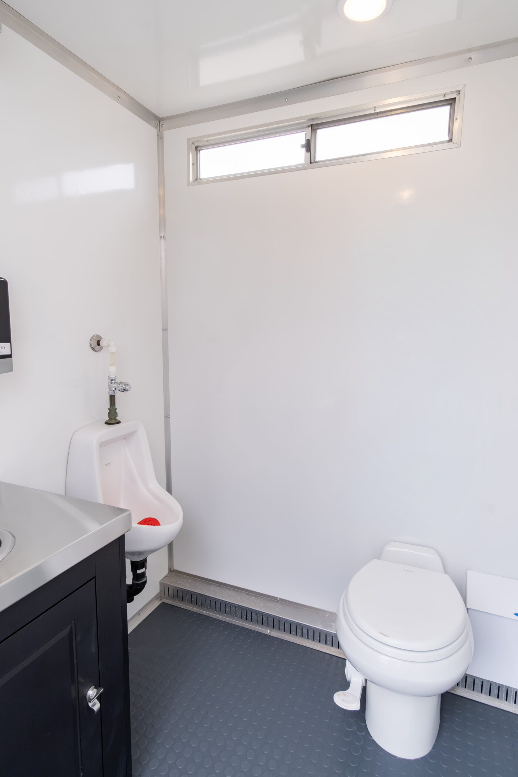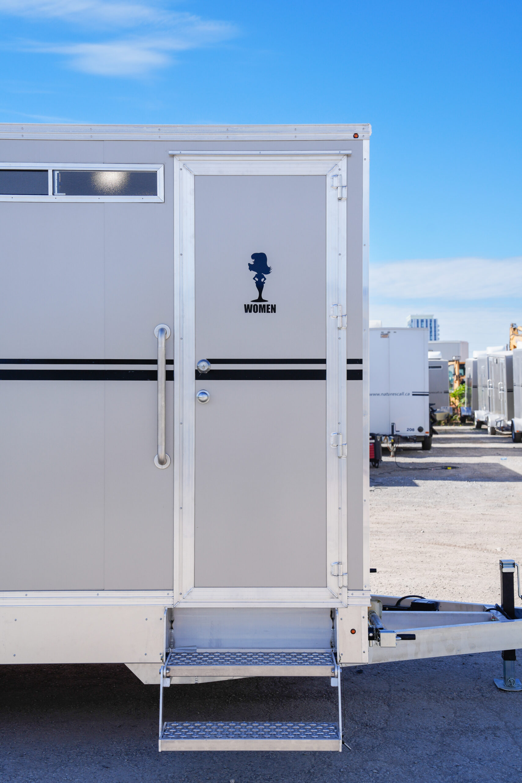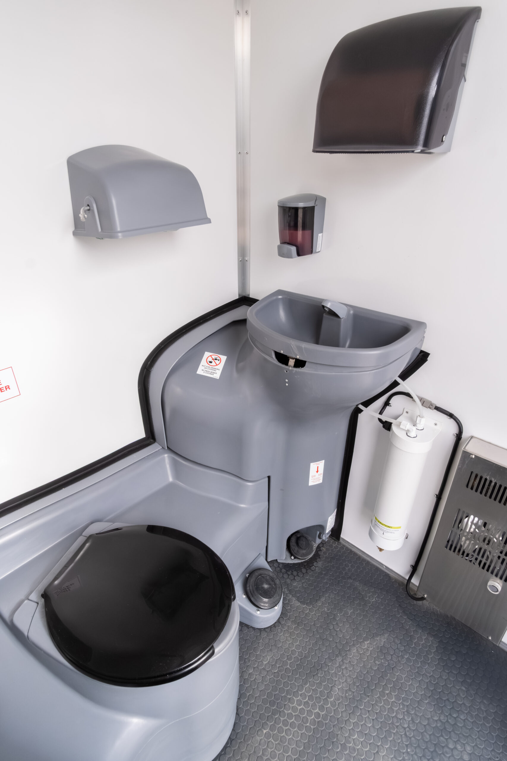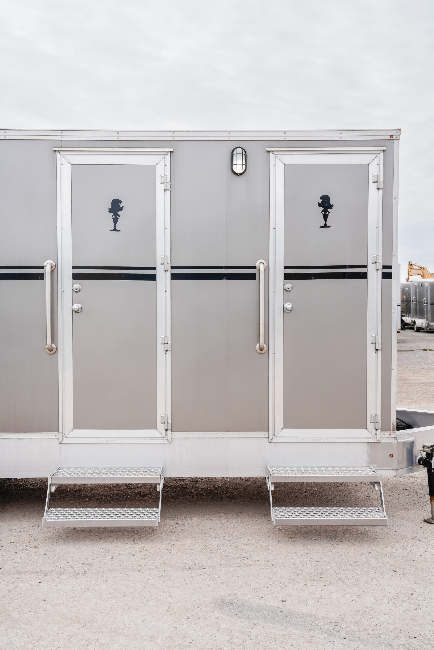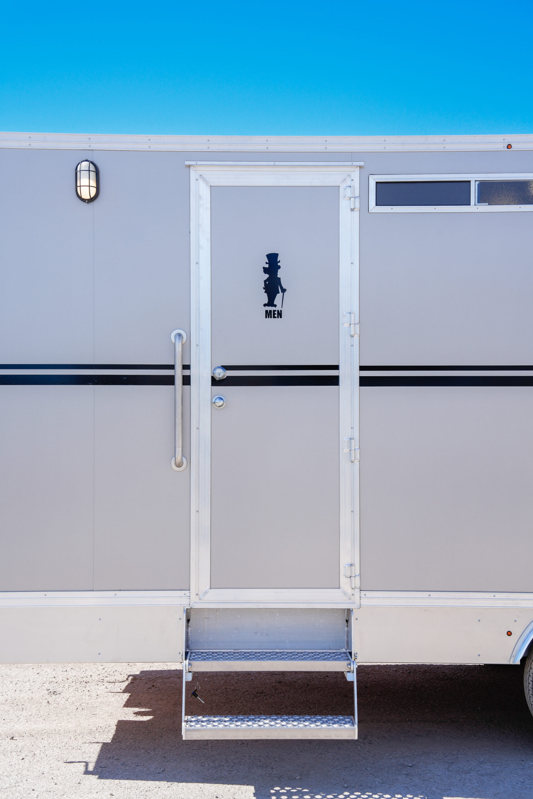 Compact trailer unit that provides on-site restroom capacity in a smaller footprint. Includes air conditioning.