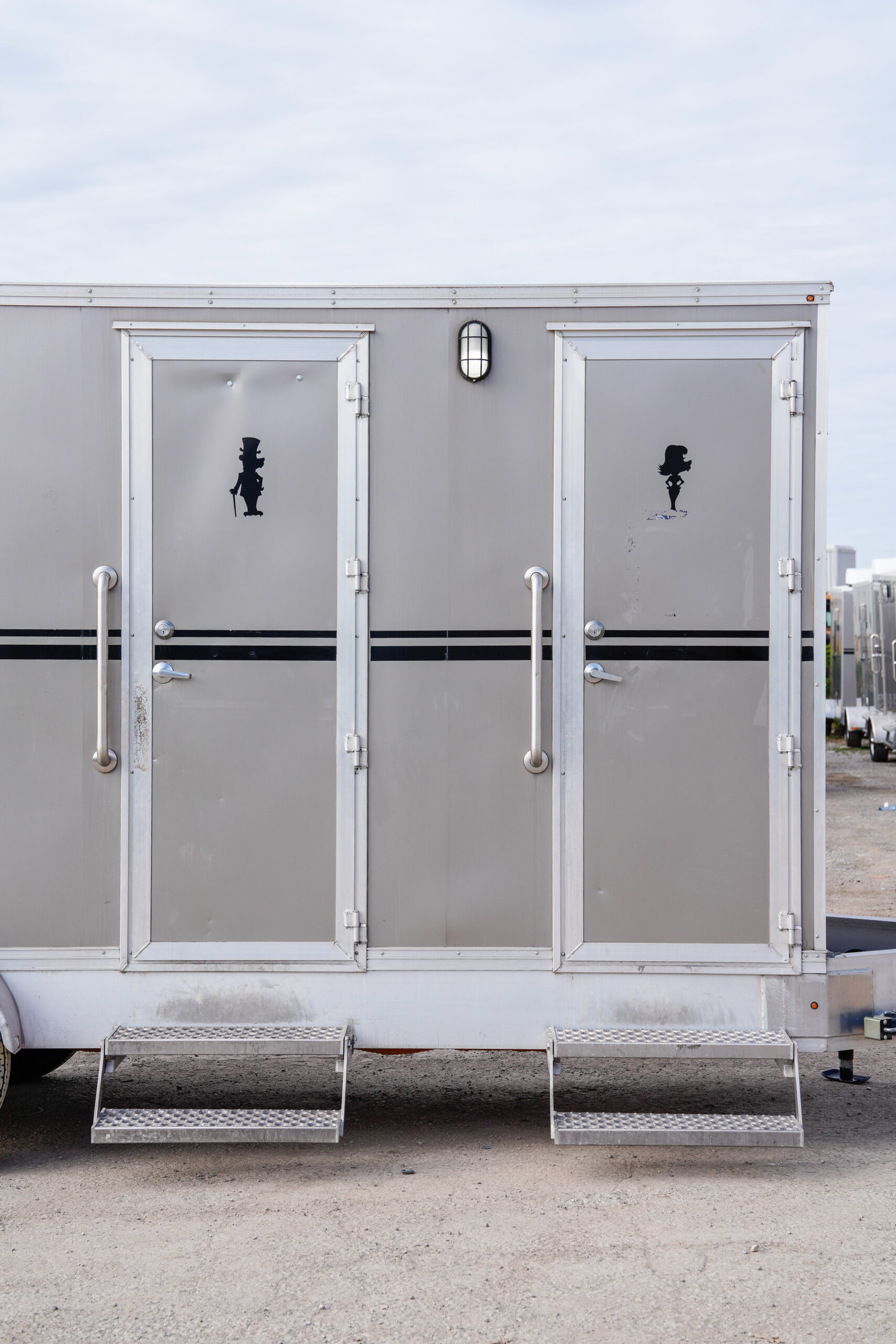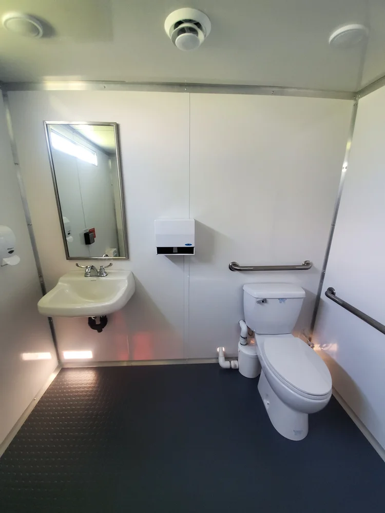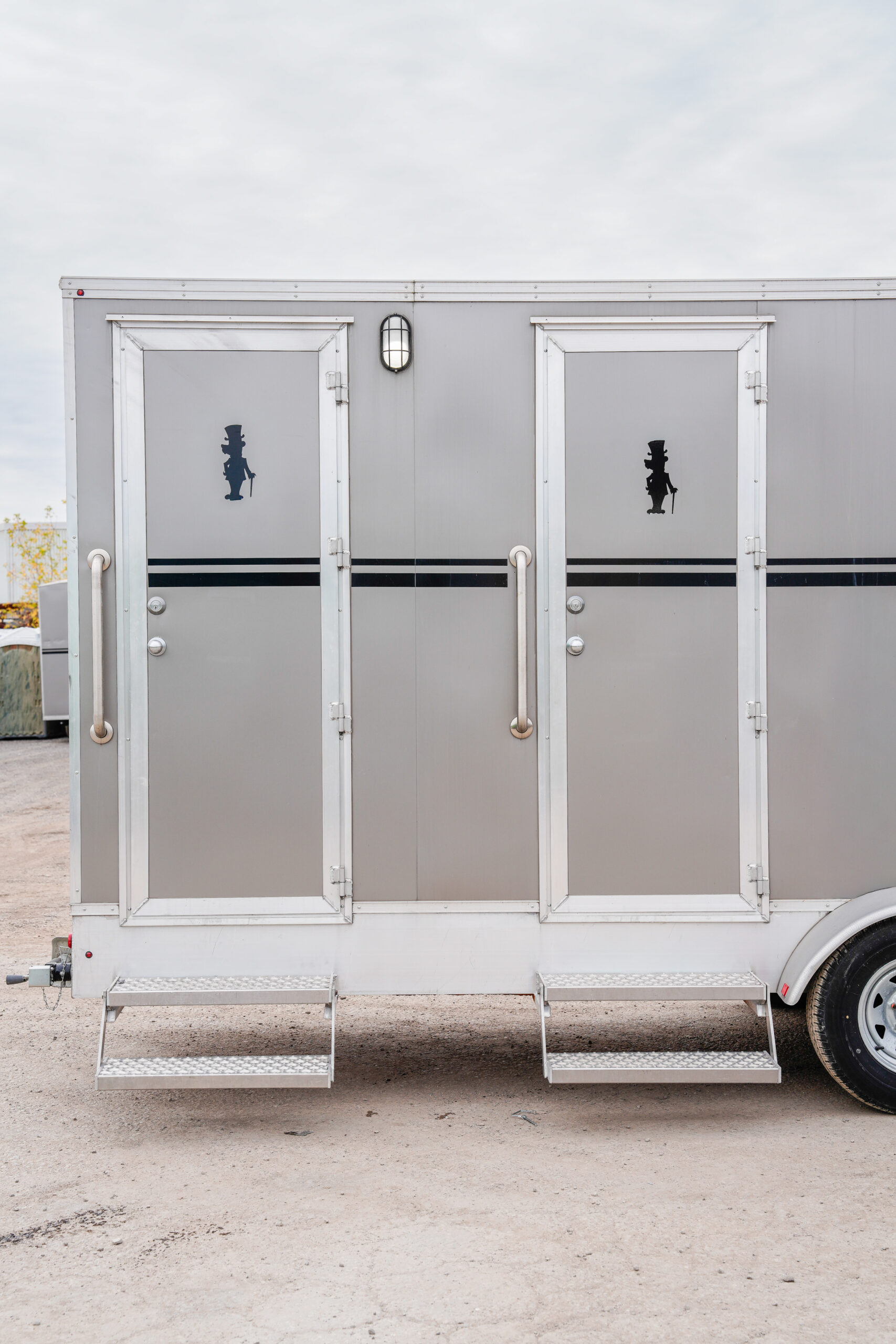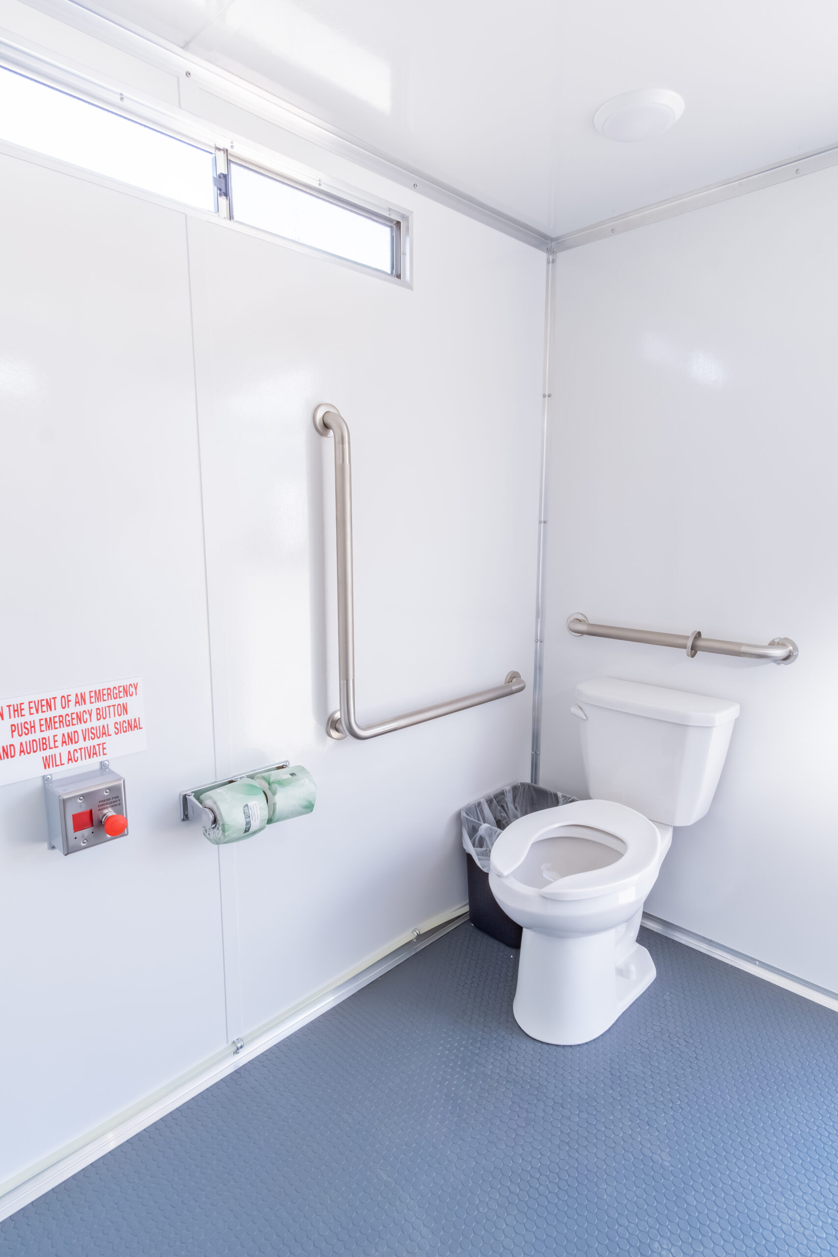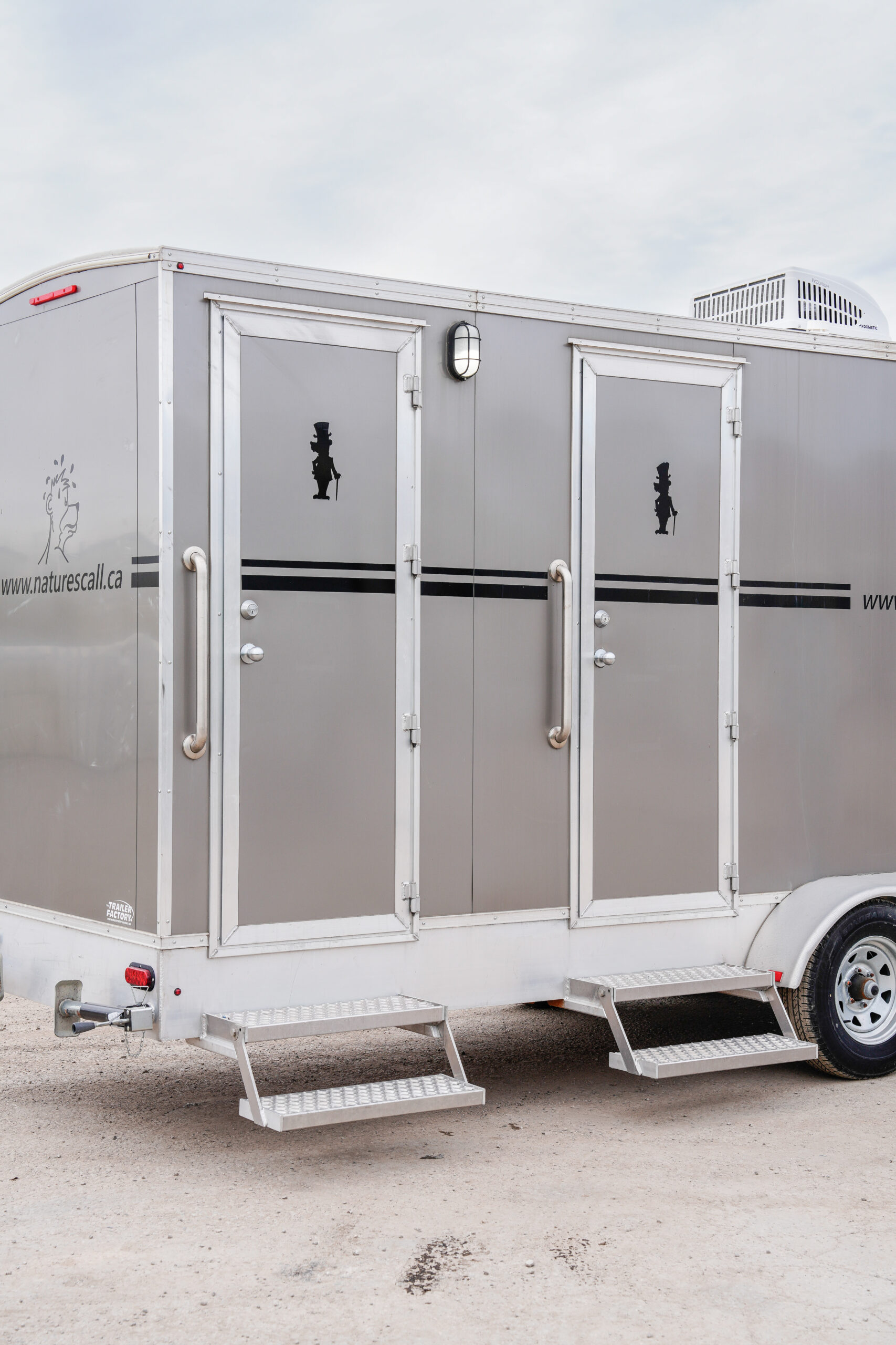 Compact trailer unit that provides on-site restroom capacity in a smaller footprint. Includes air conditioning.