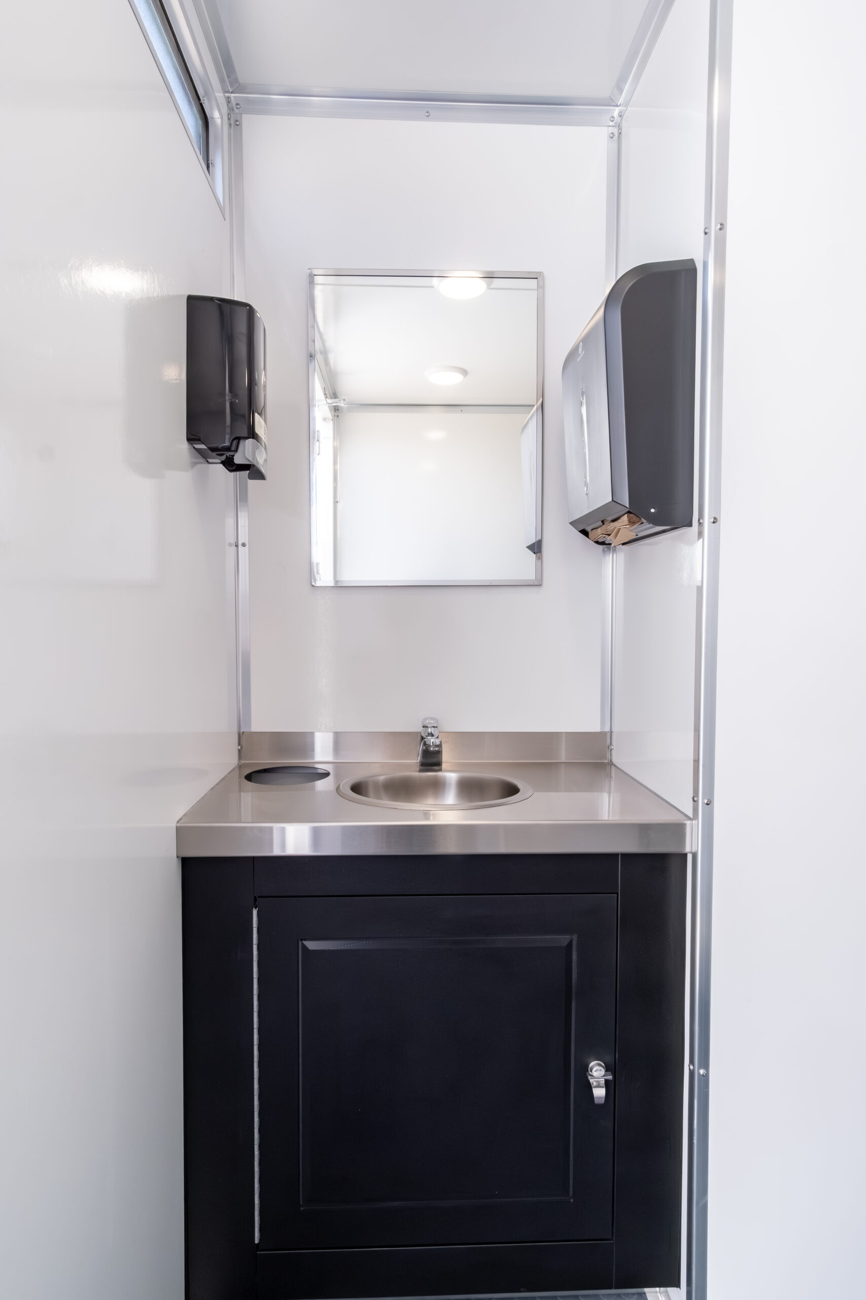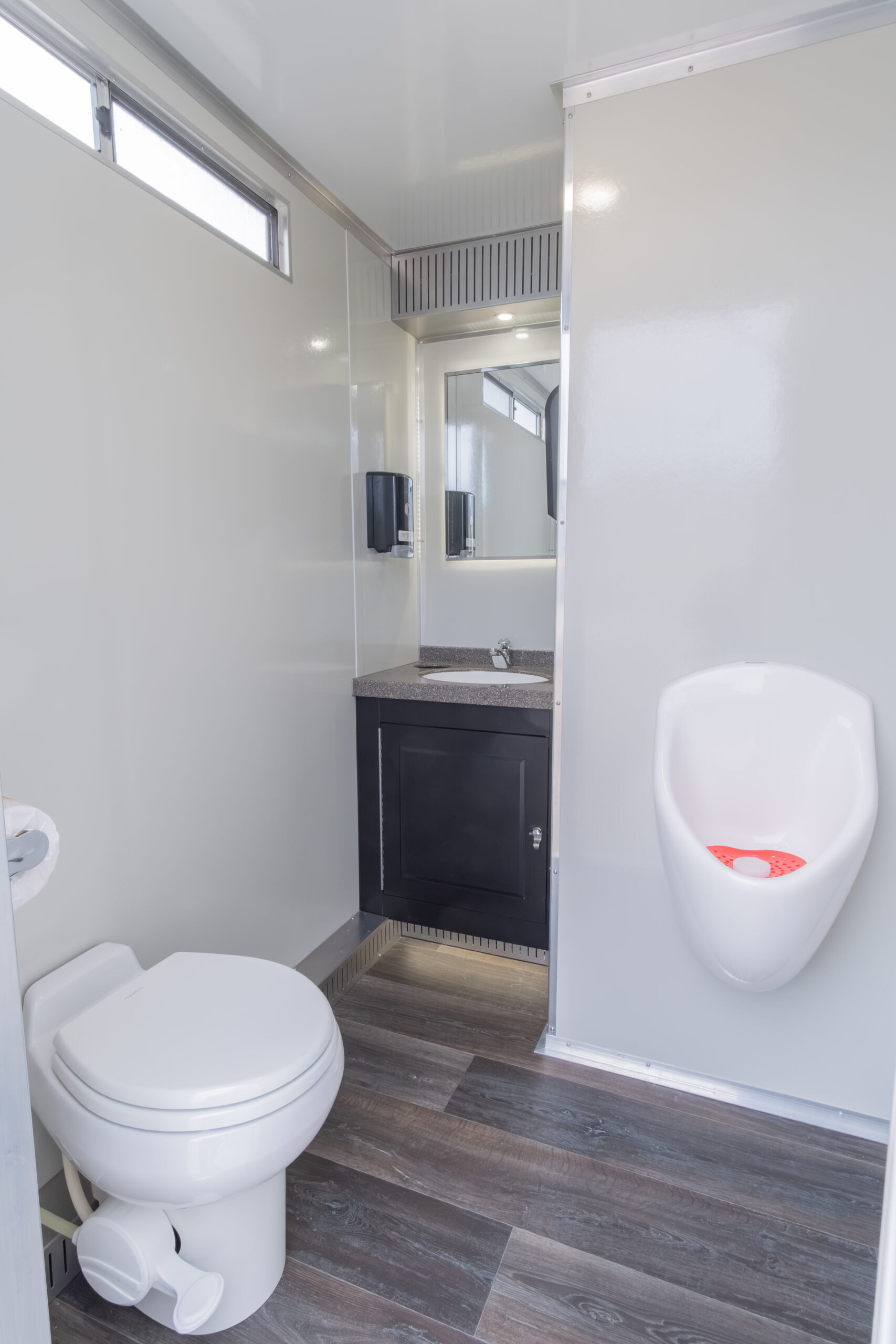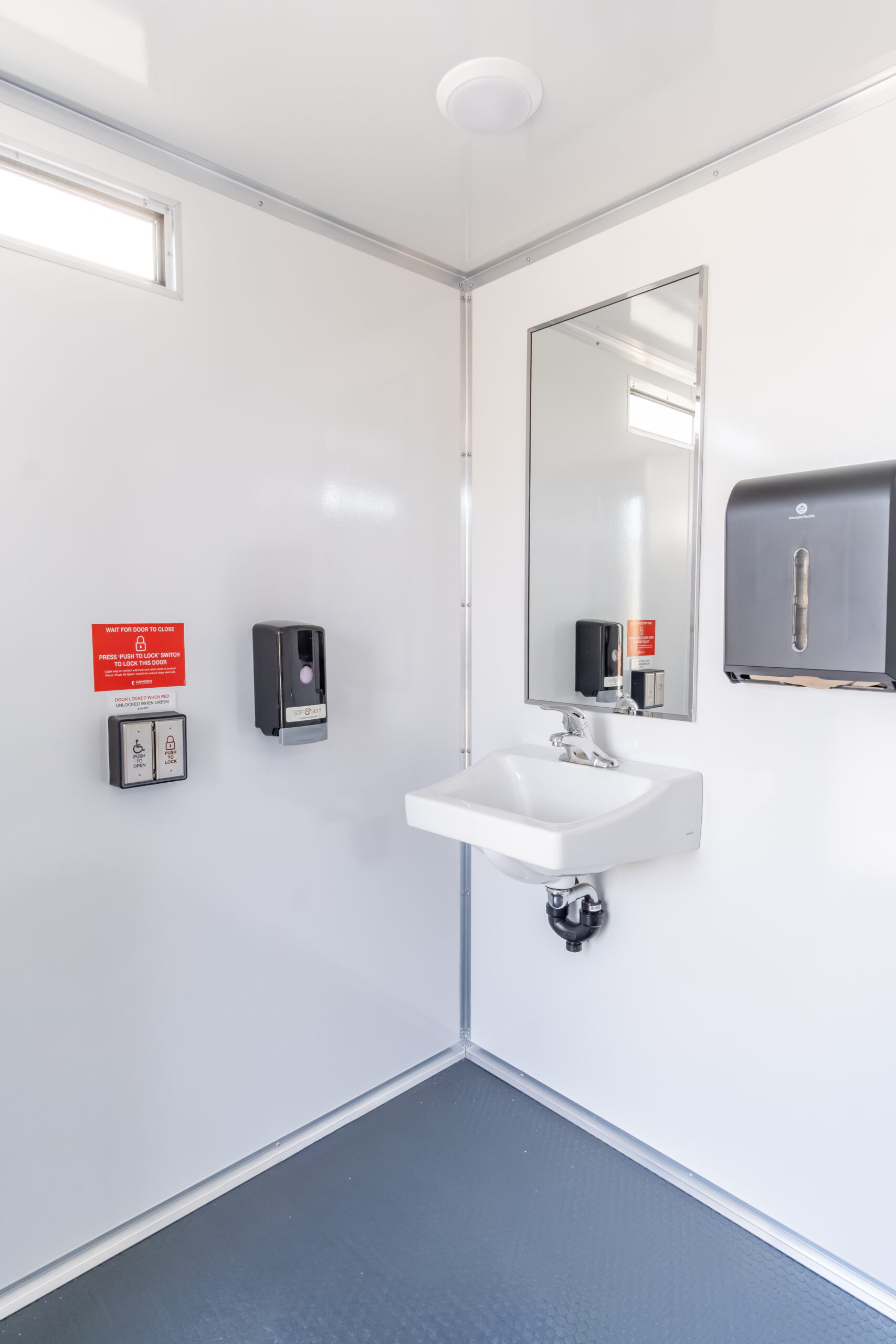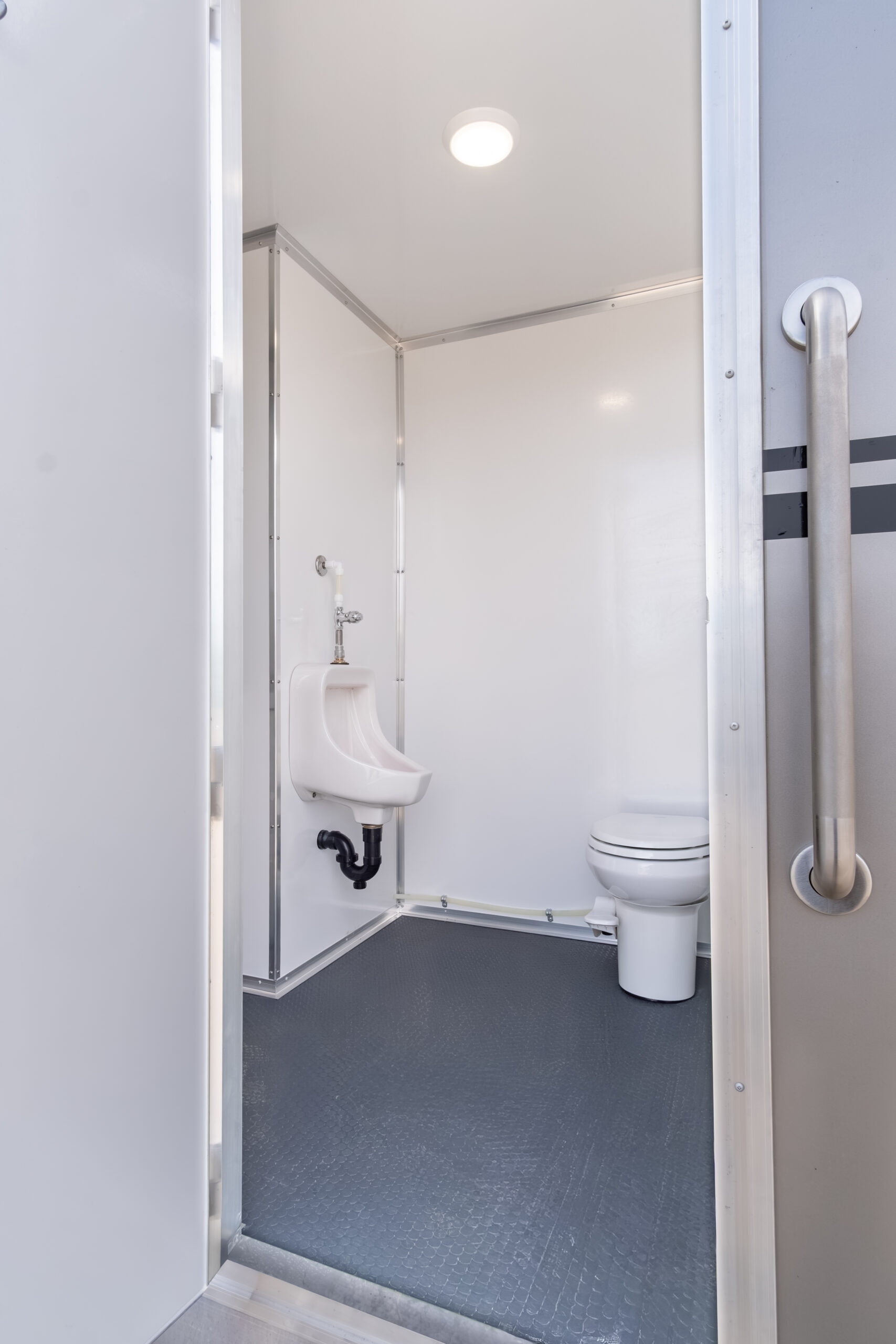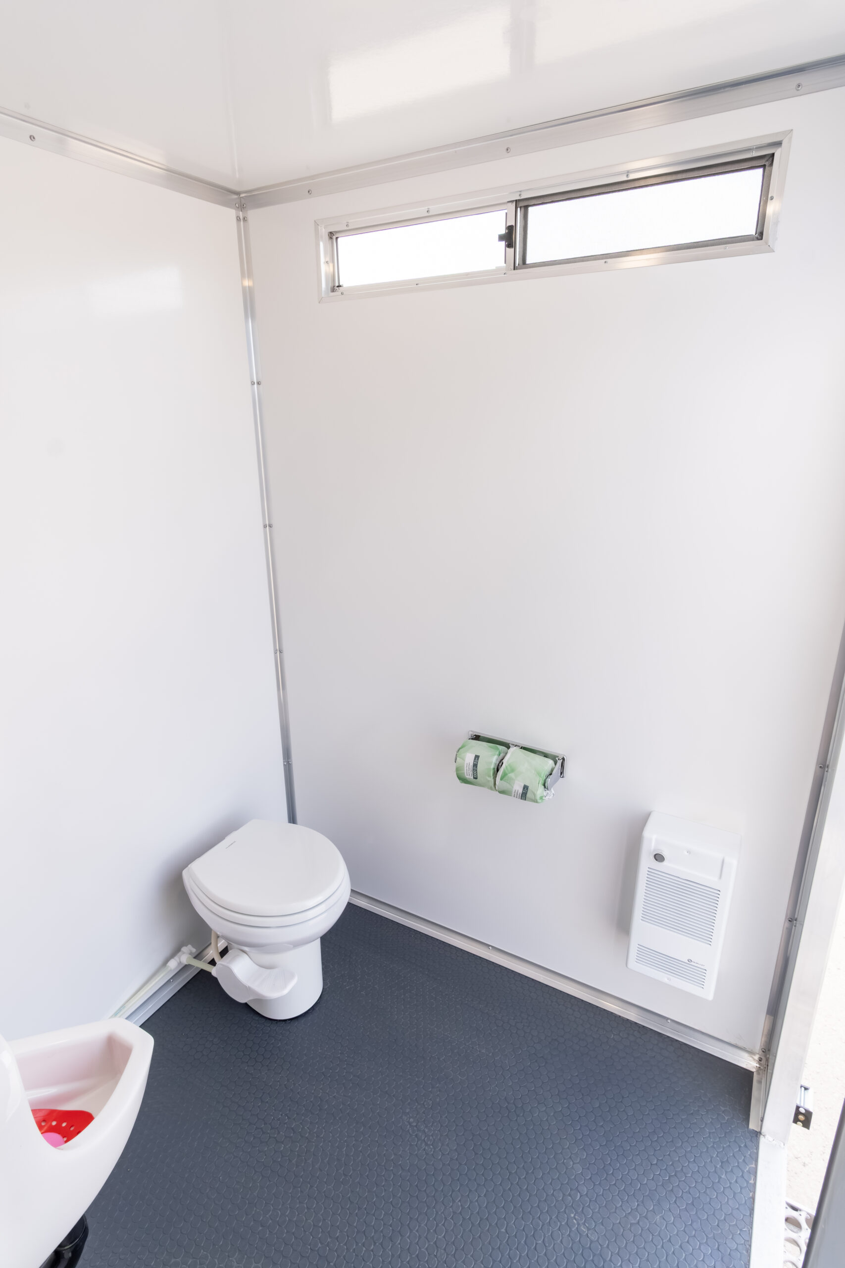 Explorer’s heavy duty industrial construction makes the Double Comfort Washroom Trailer the ideal investment for any industrial or job site. Our Double Comfort Trailer is constructed from strong, sturdy components and provides the ultimate in privacy. It is the perfect choice for your construction site or mobile sales office washroom facility.