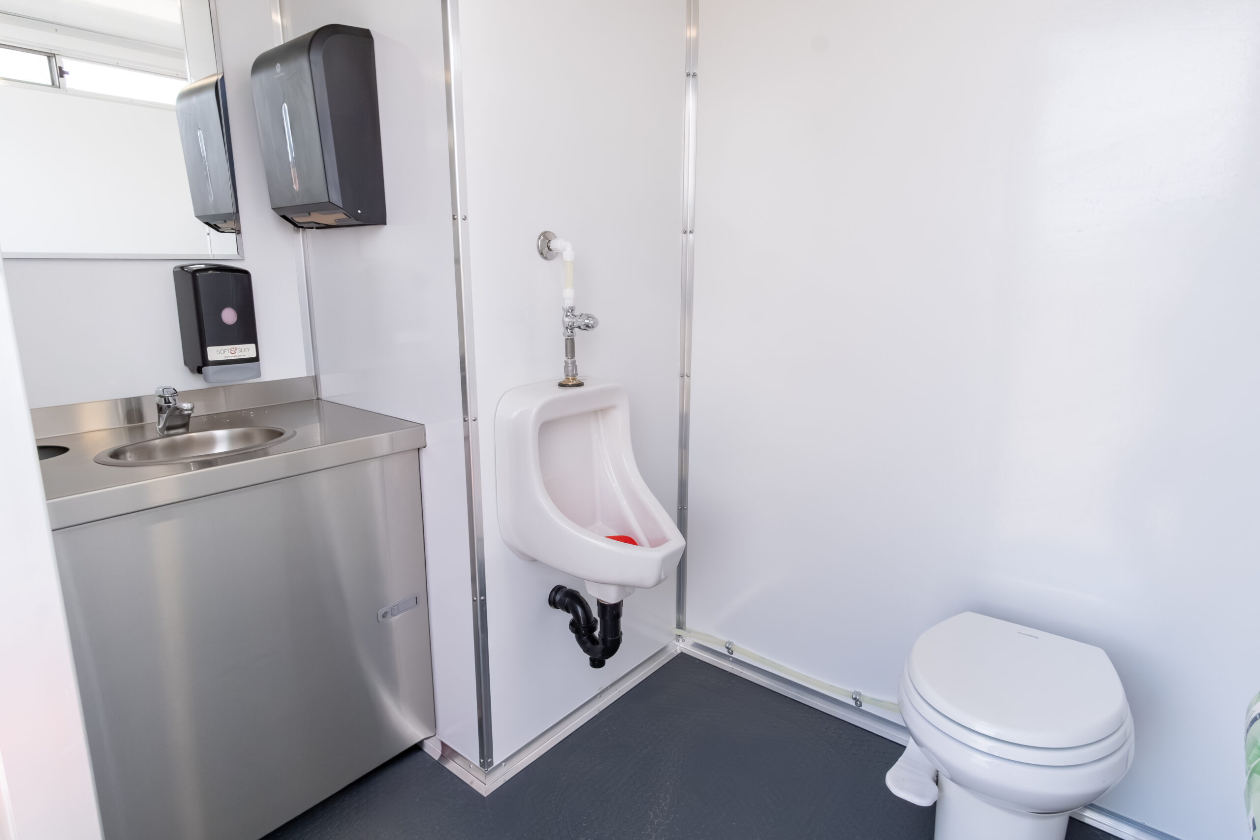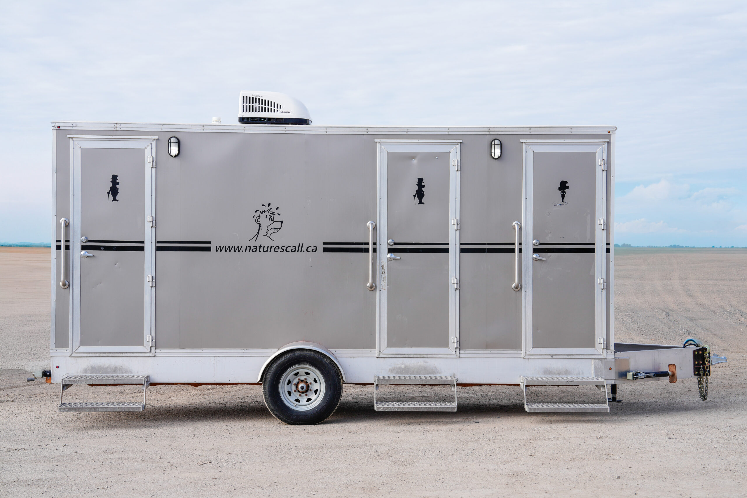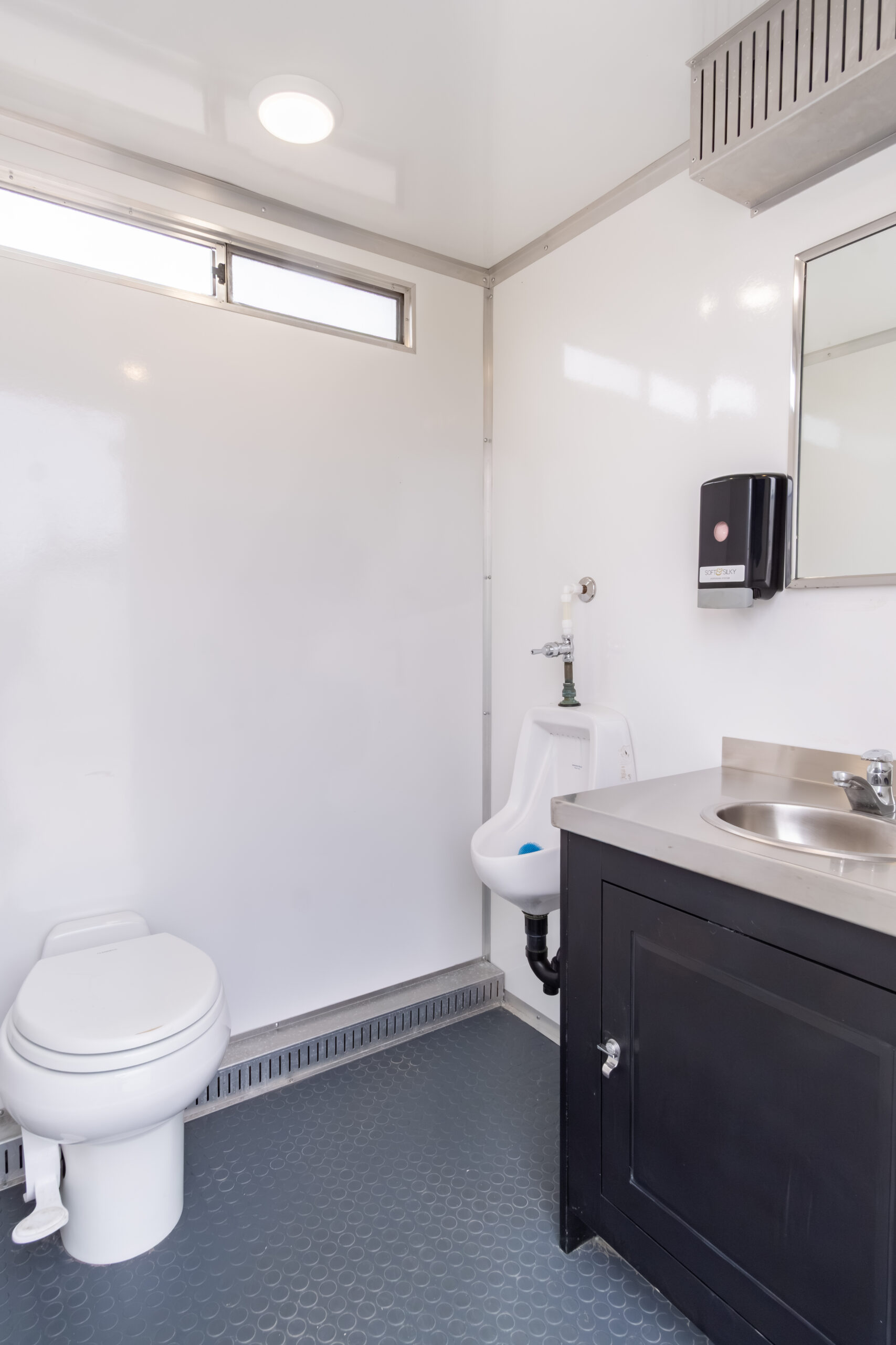 The heavy duty industrial construction makes the Triple Washroom Trailer the ideal washroom facility for any industrial or job site. Our Triple Washroom Trailer is constructed from strong, sturdy components and provides the ultimate in privacy for both female and male workers. It is the perfect choice for your construction site or mobile sales office washroom facility.