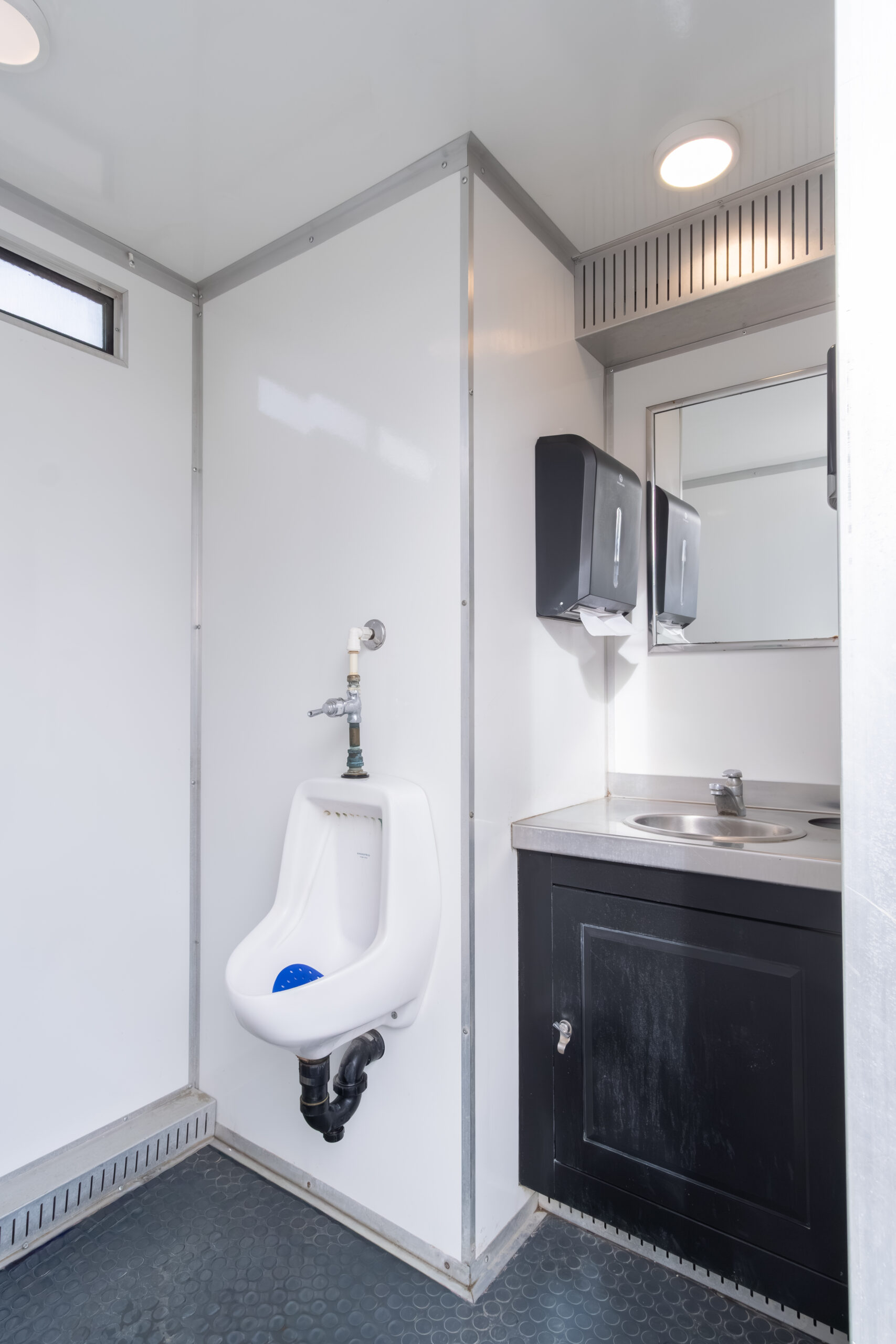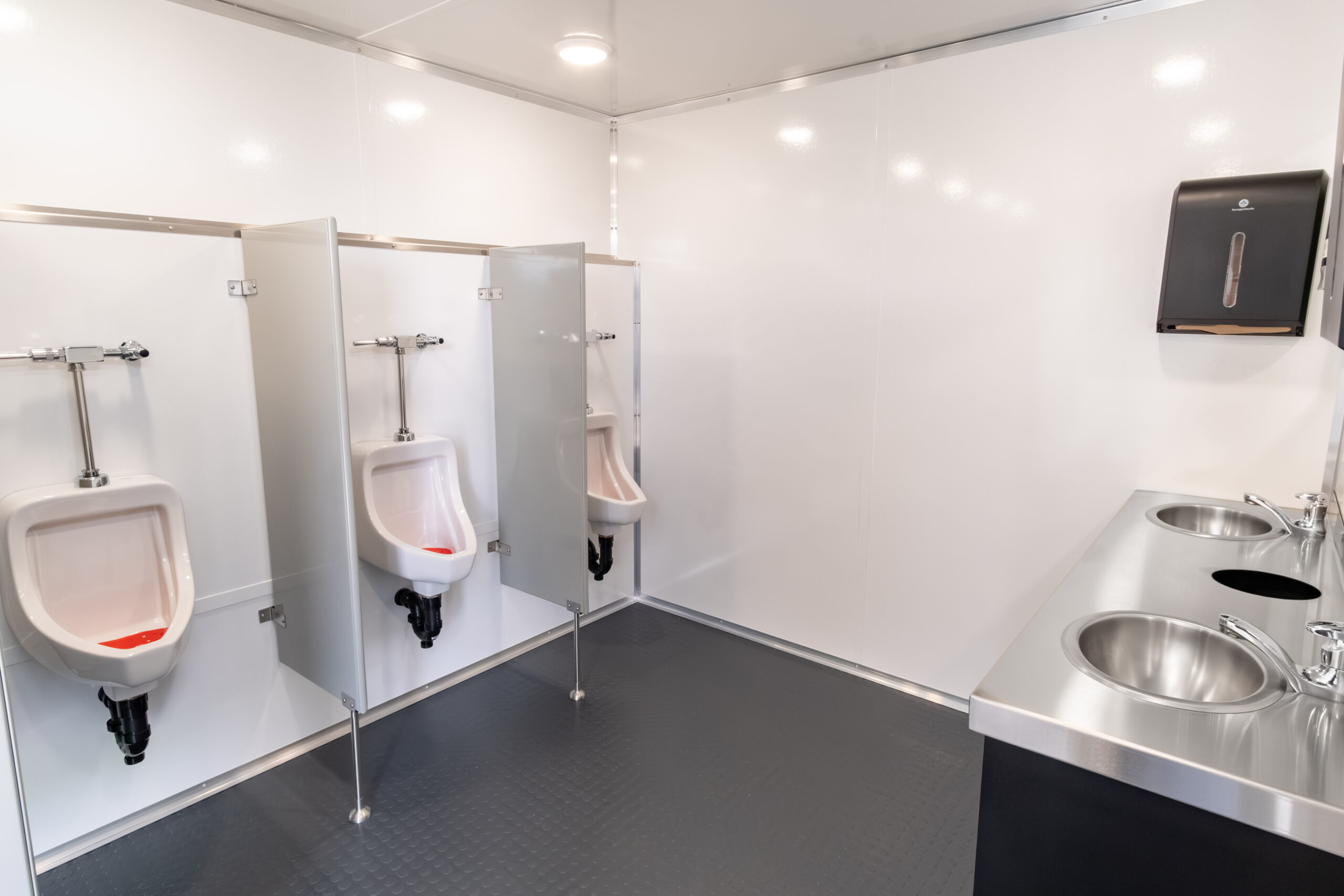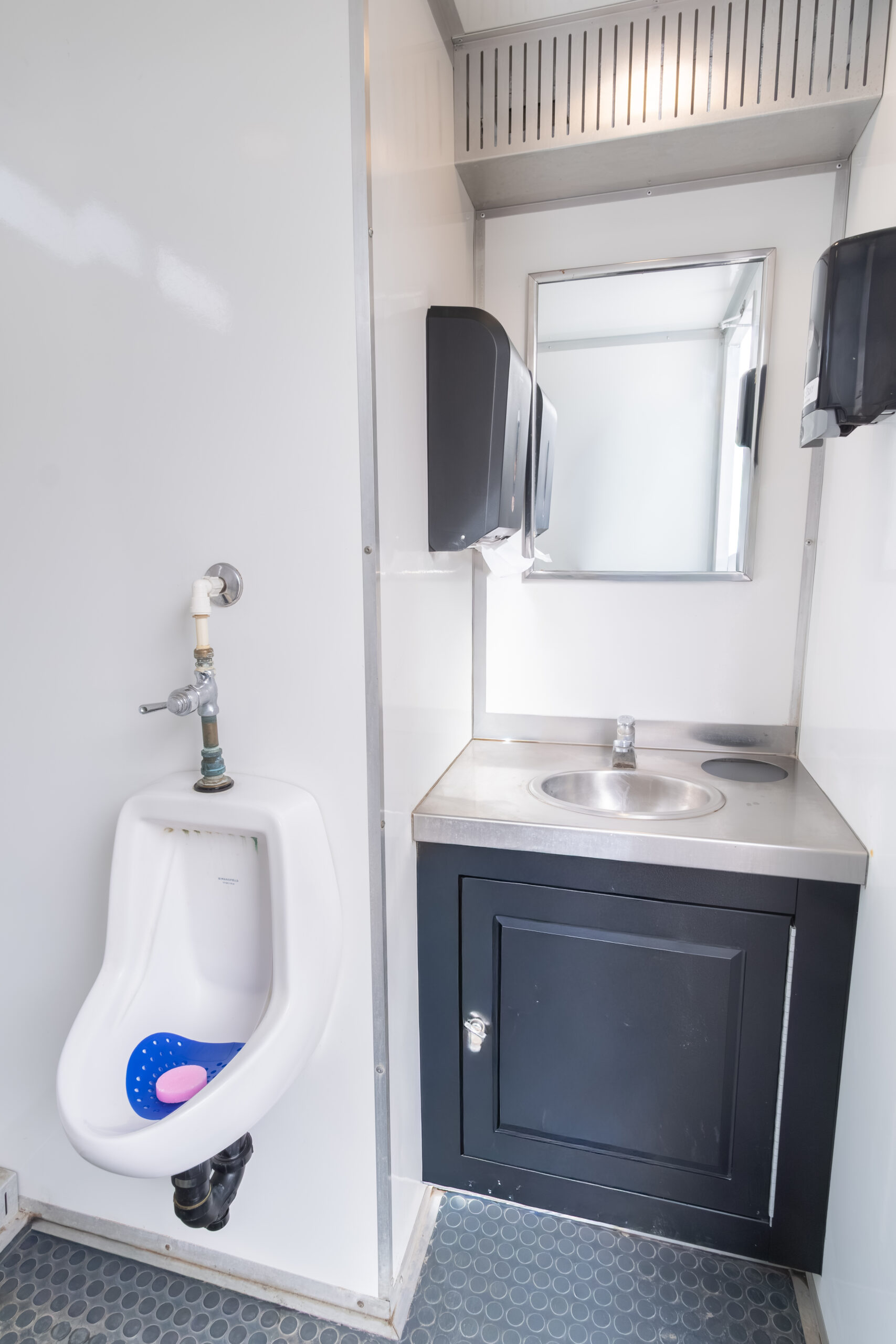 The heavy duty industrial construction makes the Triple Washroom Trailer the ideal washroom facility for any industrial or job site. Our Triple Washroom Trailer is constructed from strong, sturdy components and provides the ultimate in privacy for both female and male workers. It is the perfect choice for your construction site or mobile sales office washroom facility.