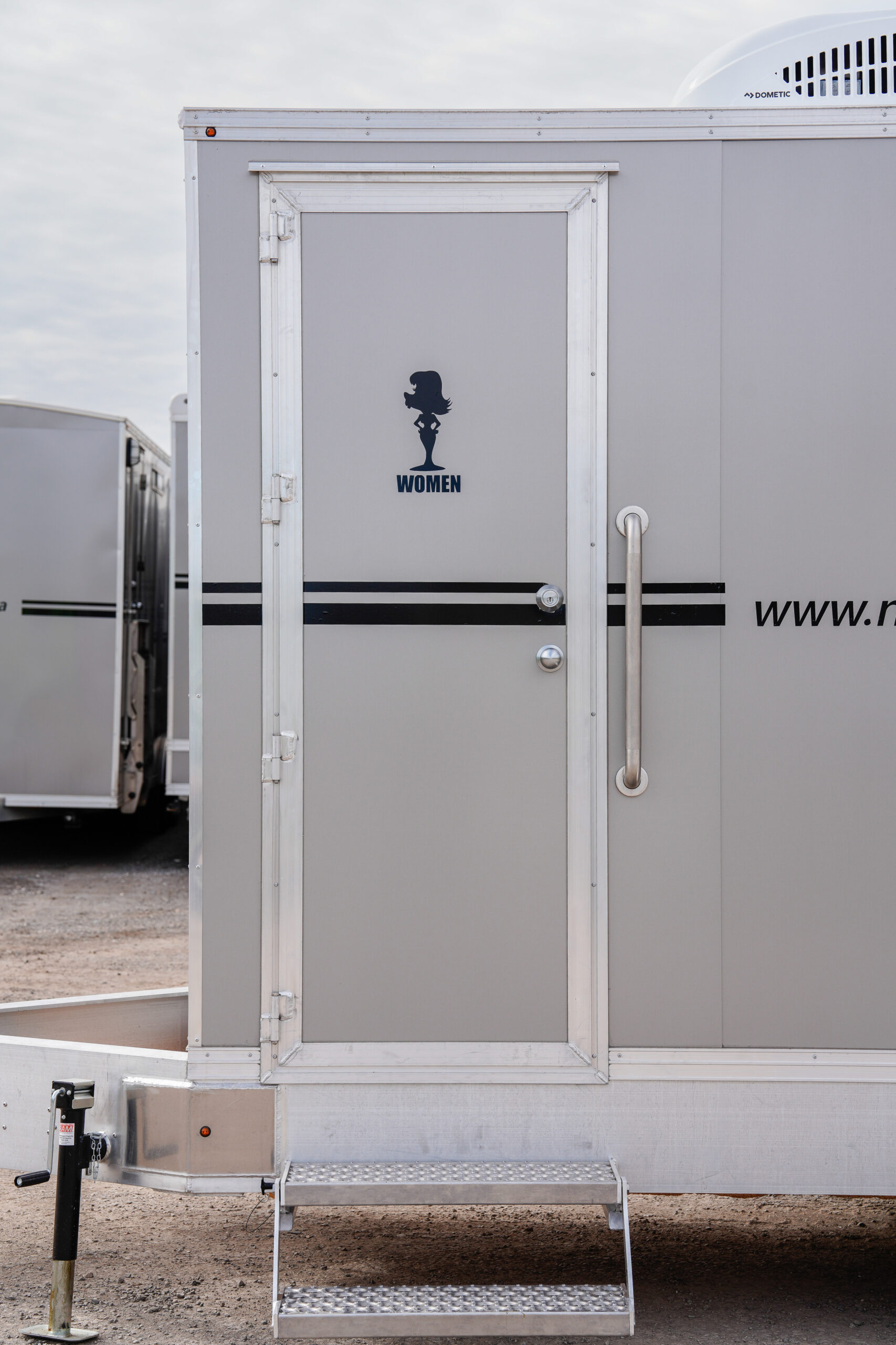 Compact Restroom Trailer Compact trailer unit that provides on-site restroom capacity in a smaller footprint. Includes air conditioning.