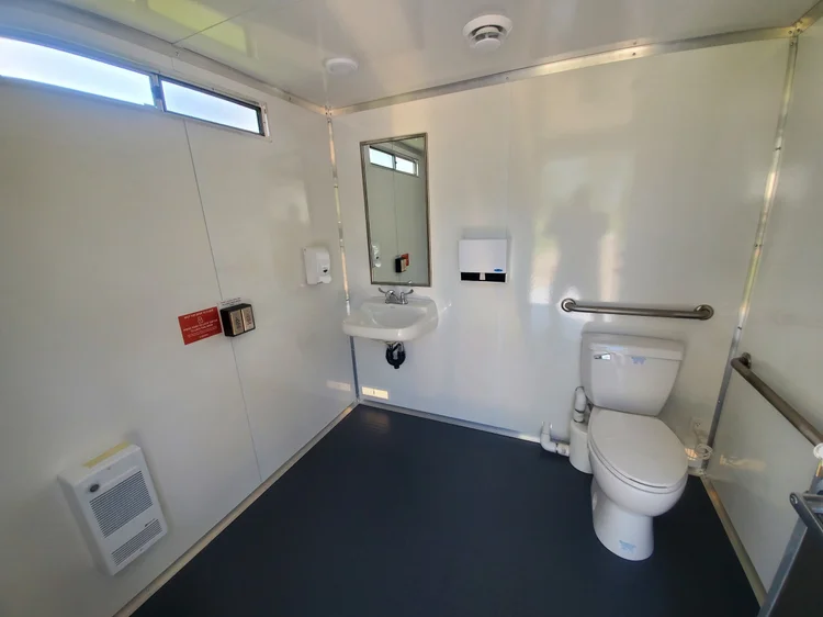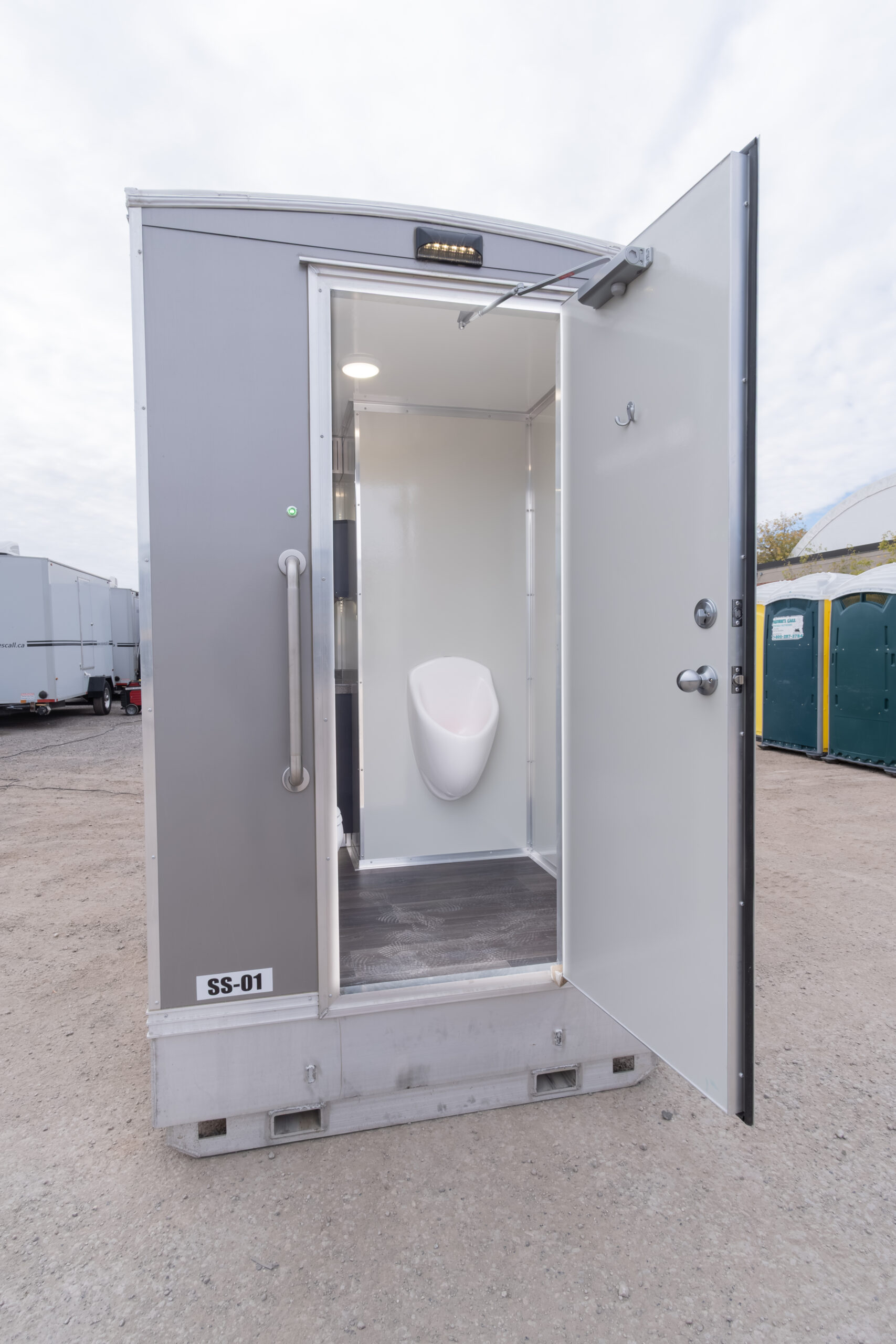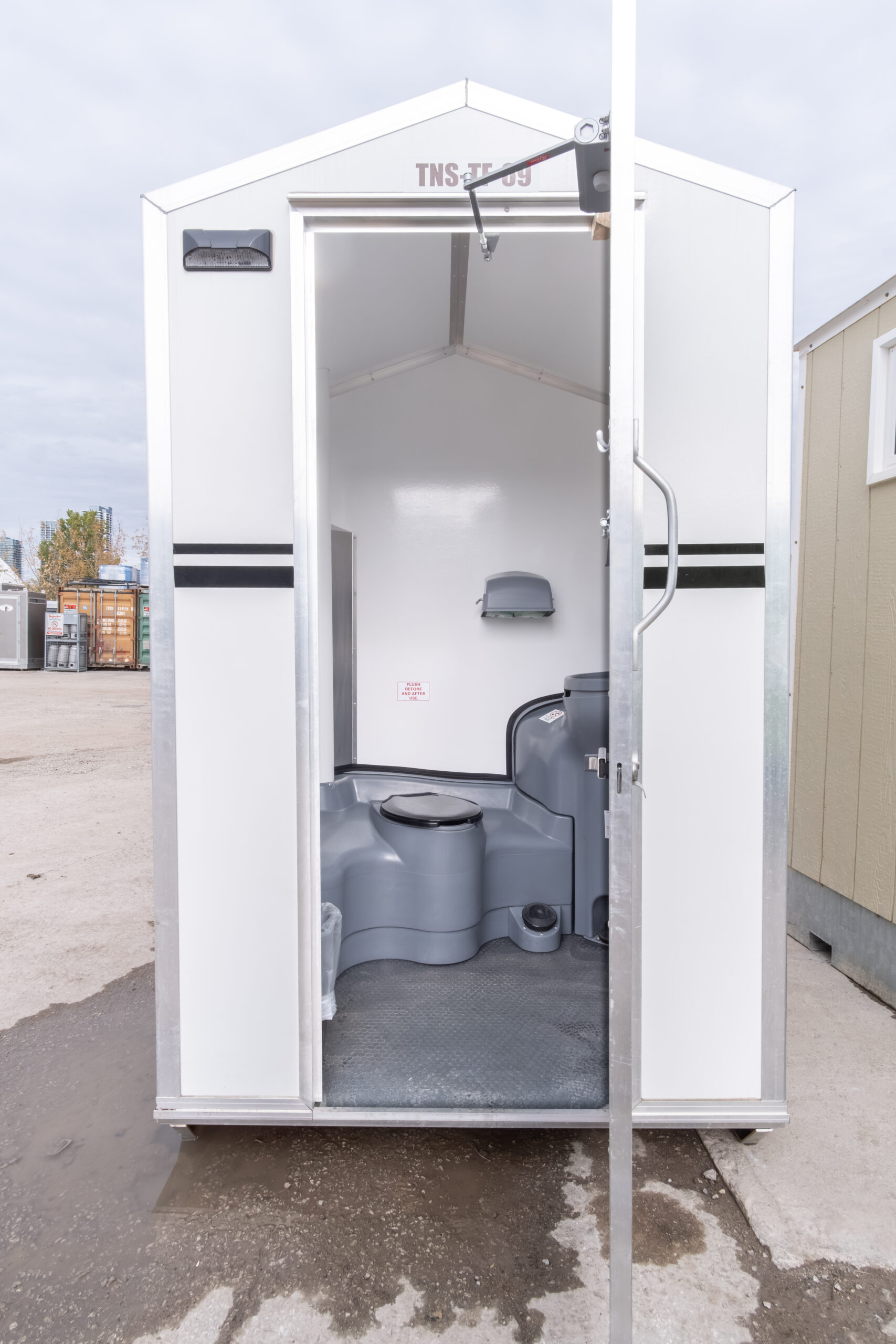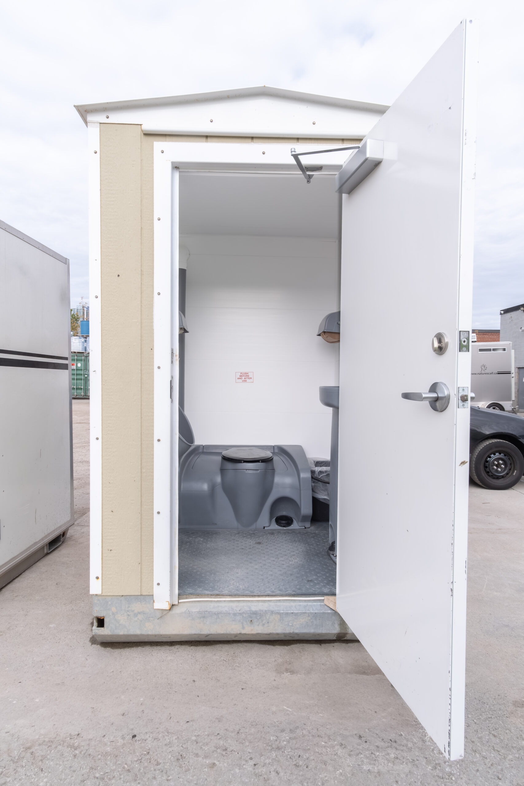 Single Portable Restroom Single-unit portable restroom for tight spaces and quick deployment. Power requirements reflect a built-in water heater.