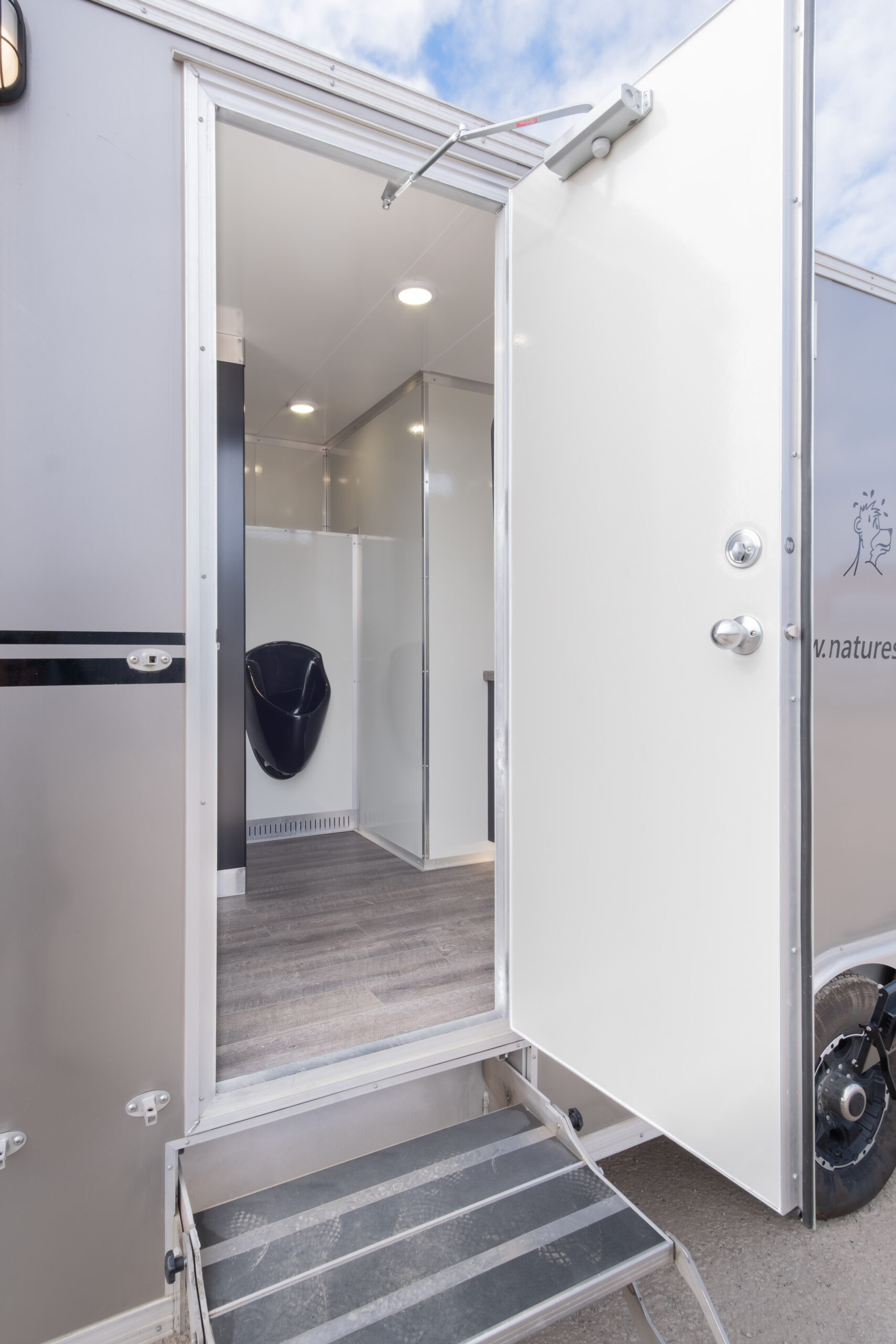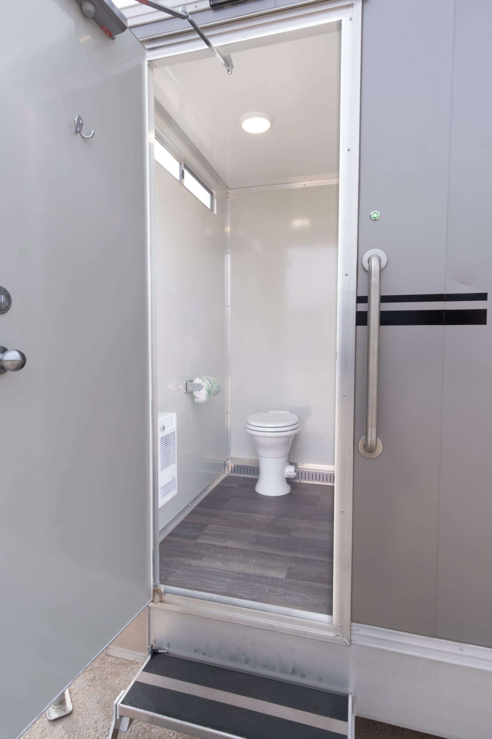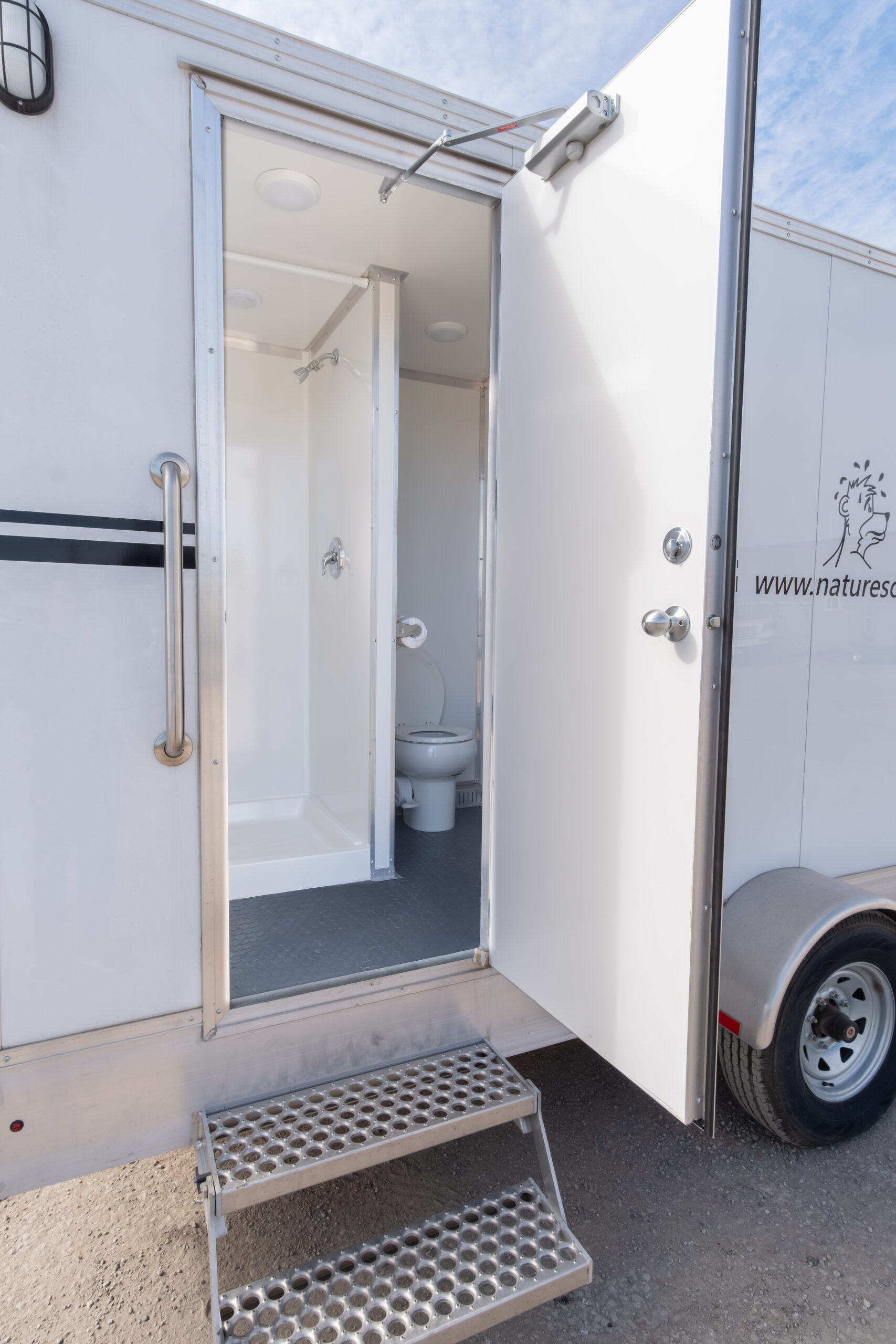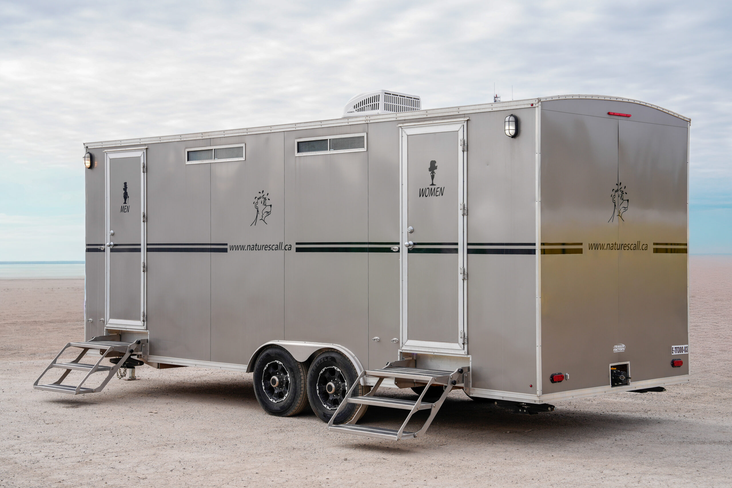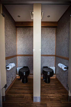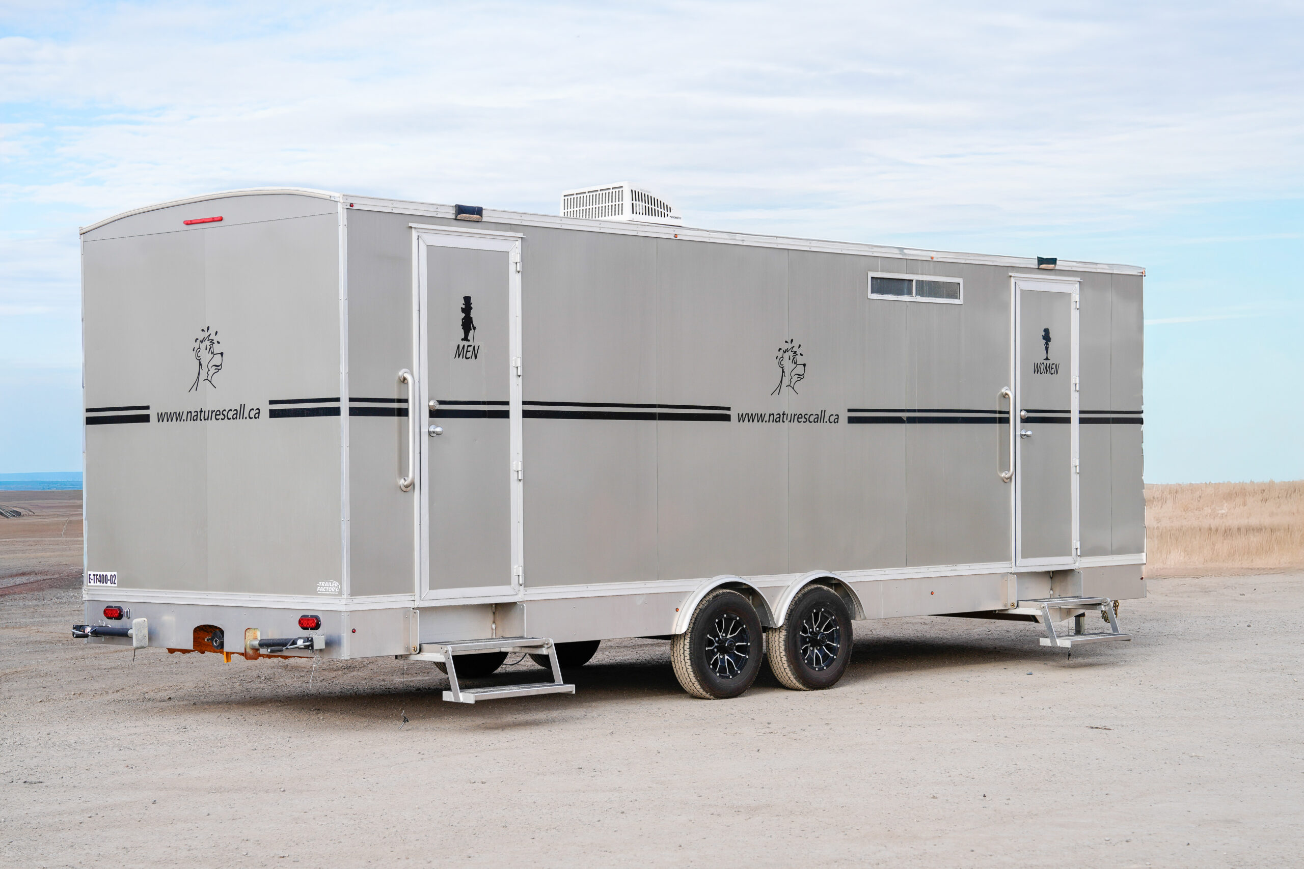 Enjoy surprising comfort and luxury in our Elegance 300 Mobile Restroom Suite featuring elegant interior styling and advanced interior and exterior construction. This luxury washroom trailer is only one example of the Luxury restroom suites Nature’s Call has to offer.