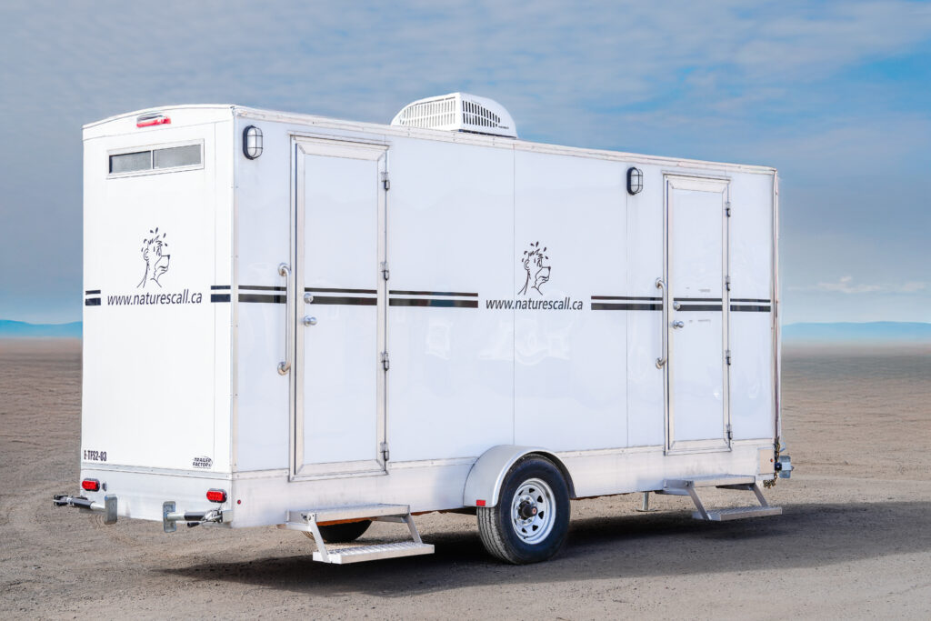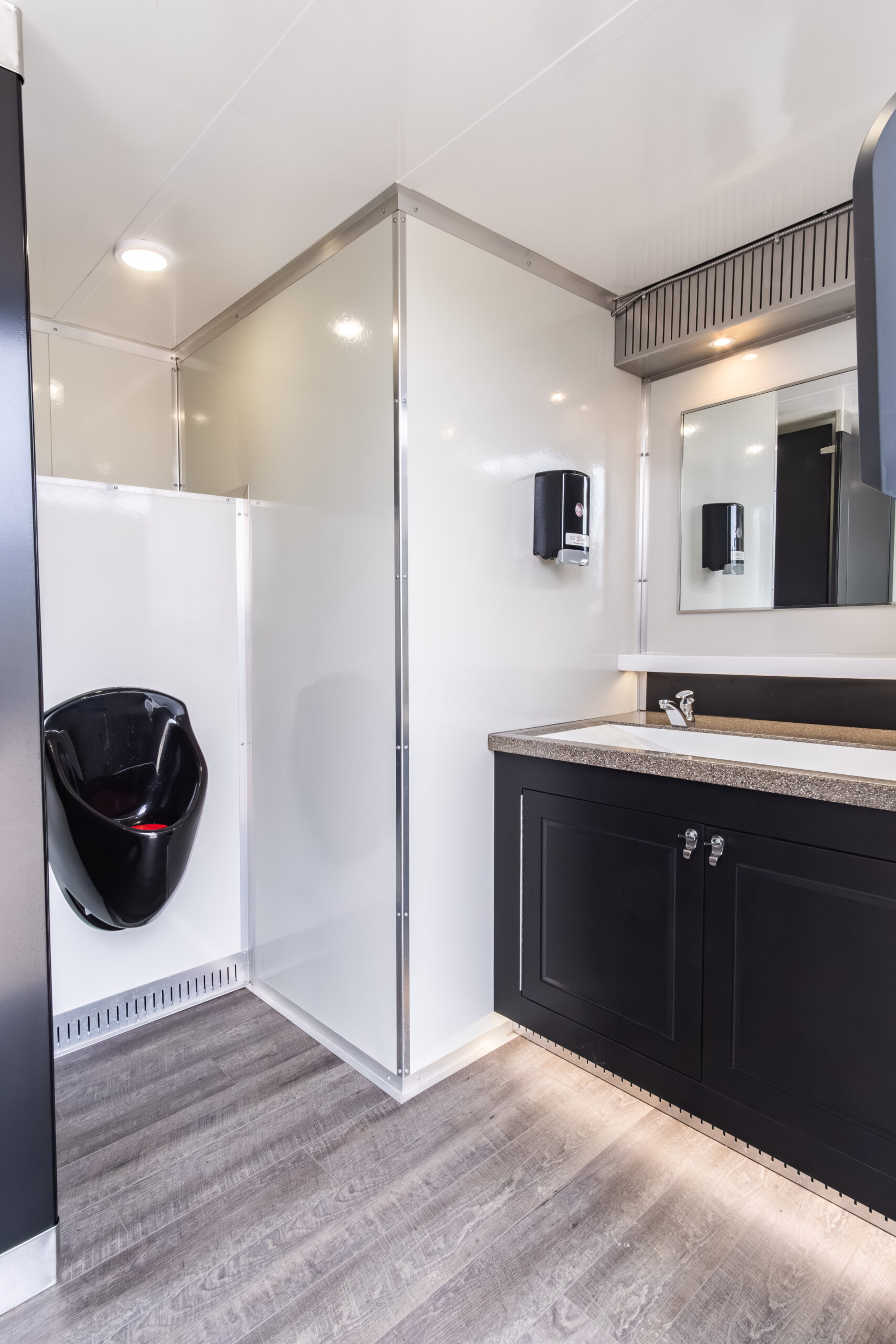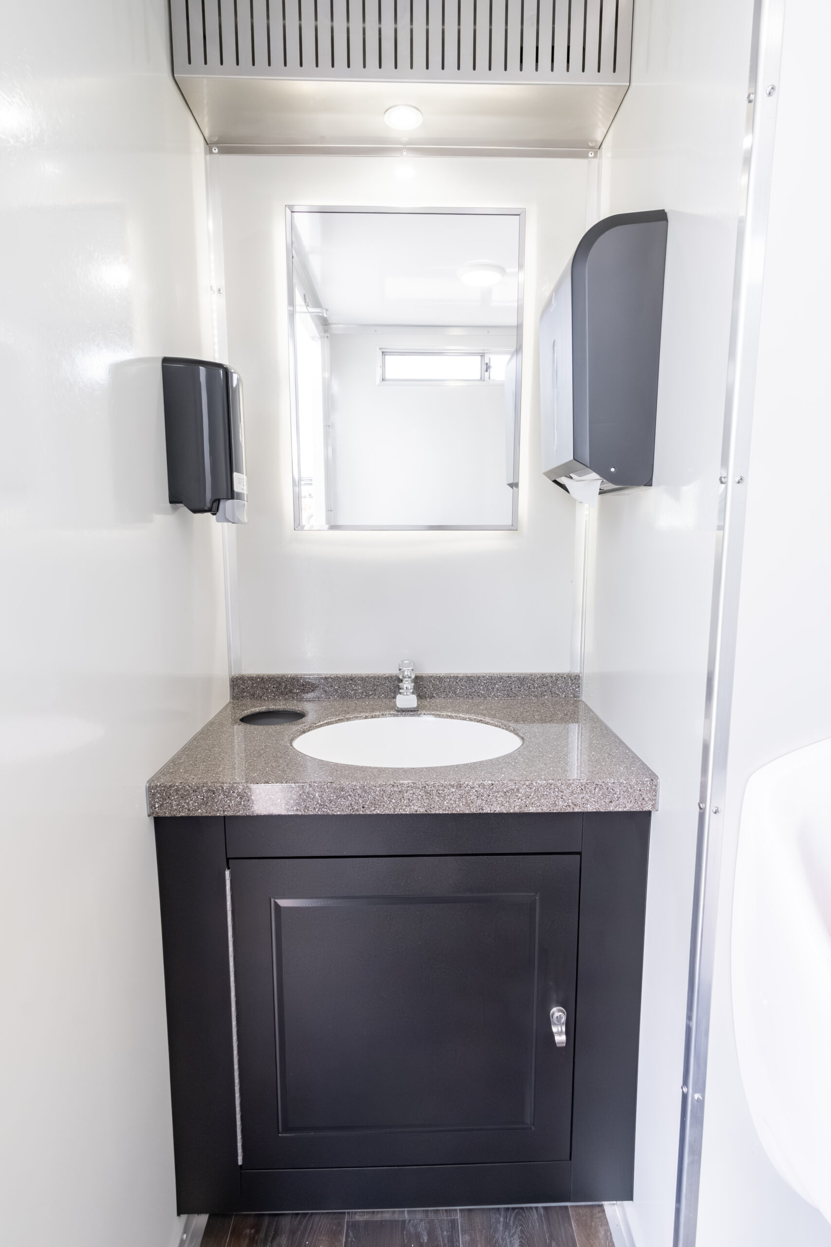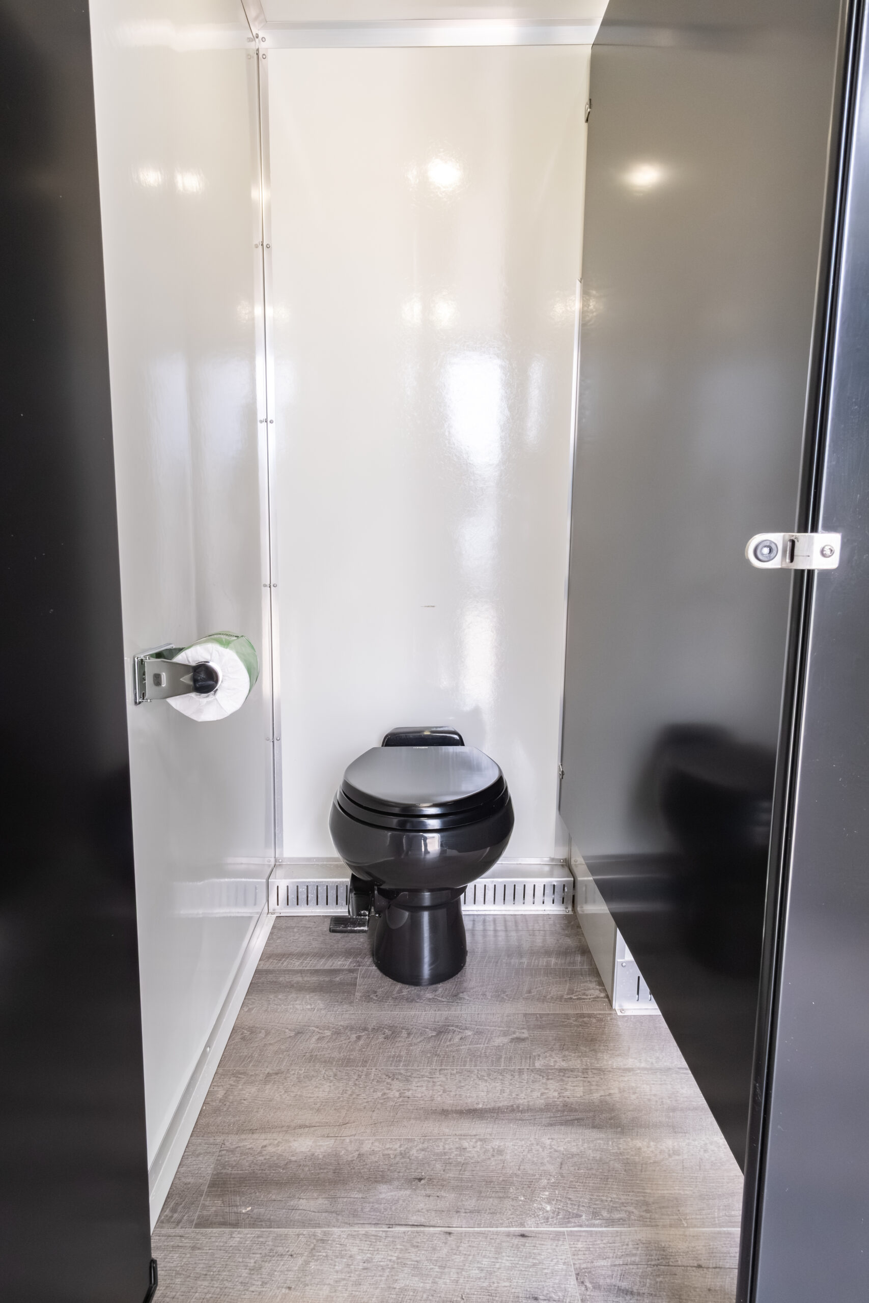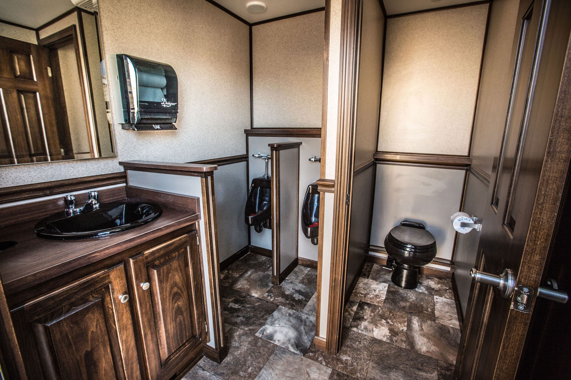 Enjoy surprising comfort and luxury in our Elegance 300 Mobile Restroom Suite featuring elegant interior styling and advanced interior and exterior construction. This luxury washroom trailer is only one example of the Luxury restroom suites Nature’s Call has to offer.
