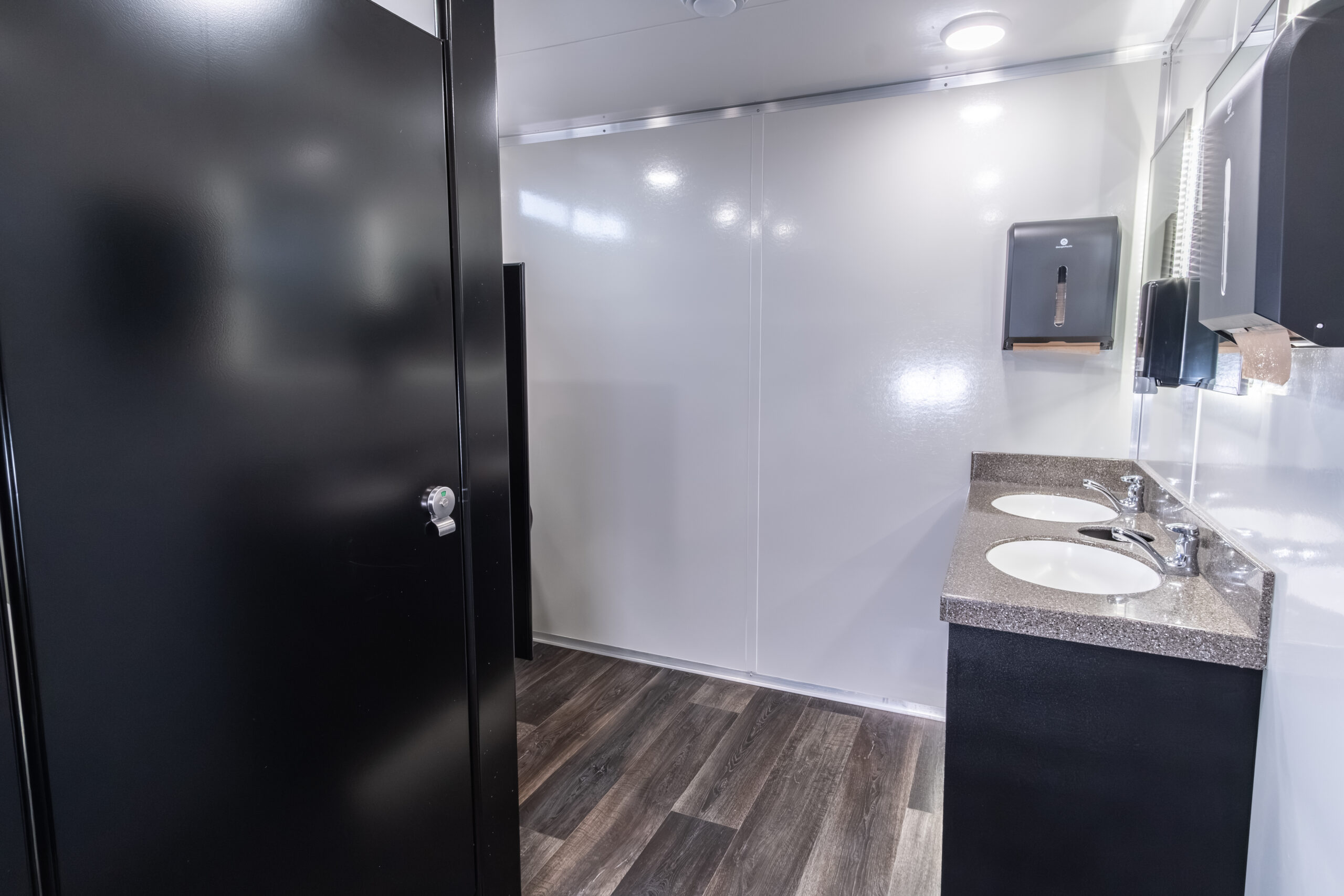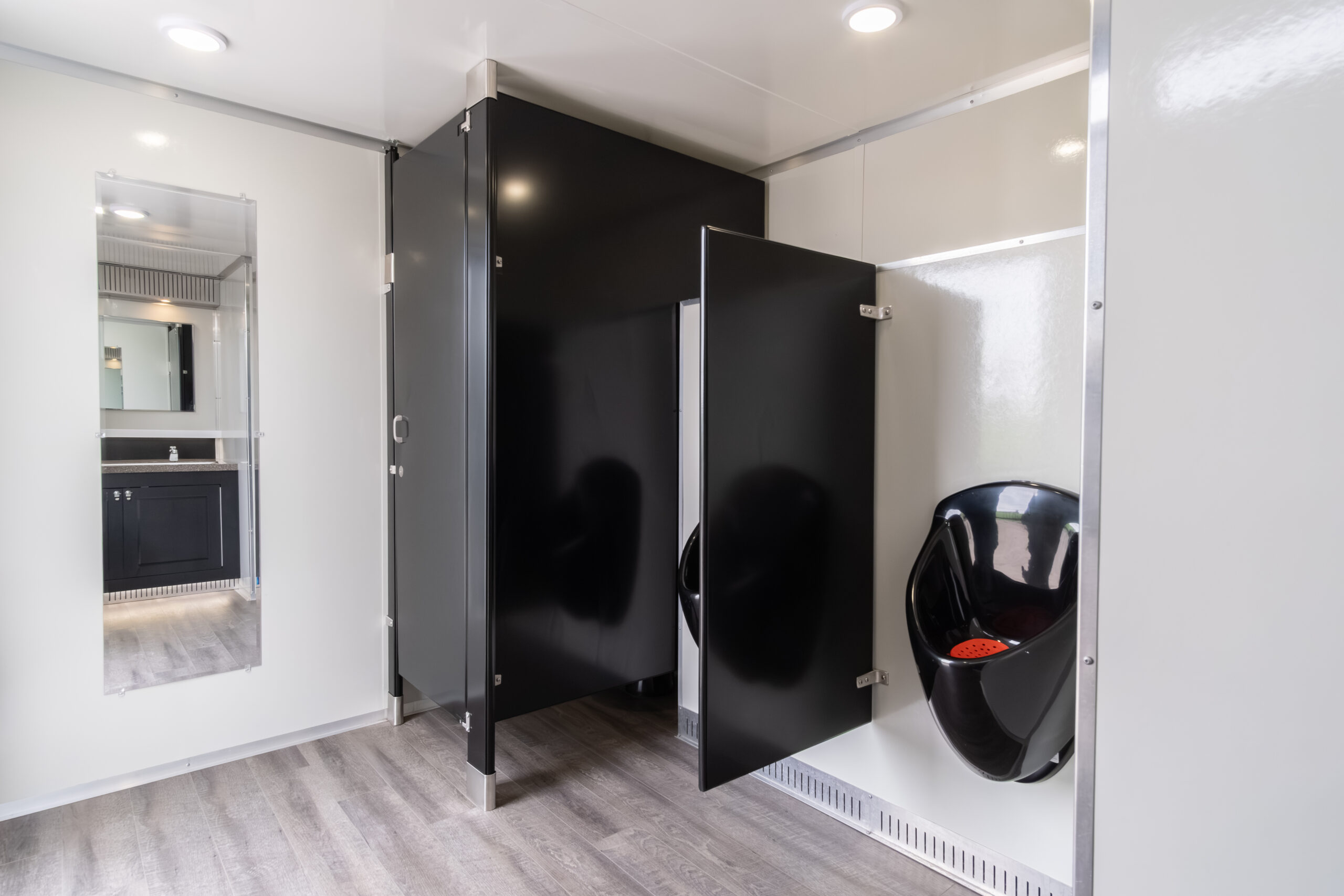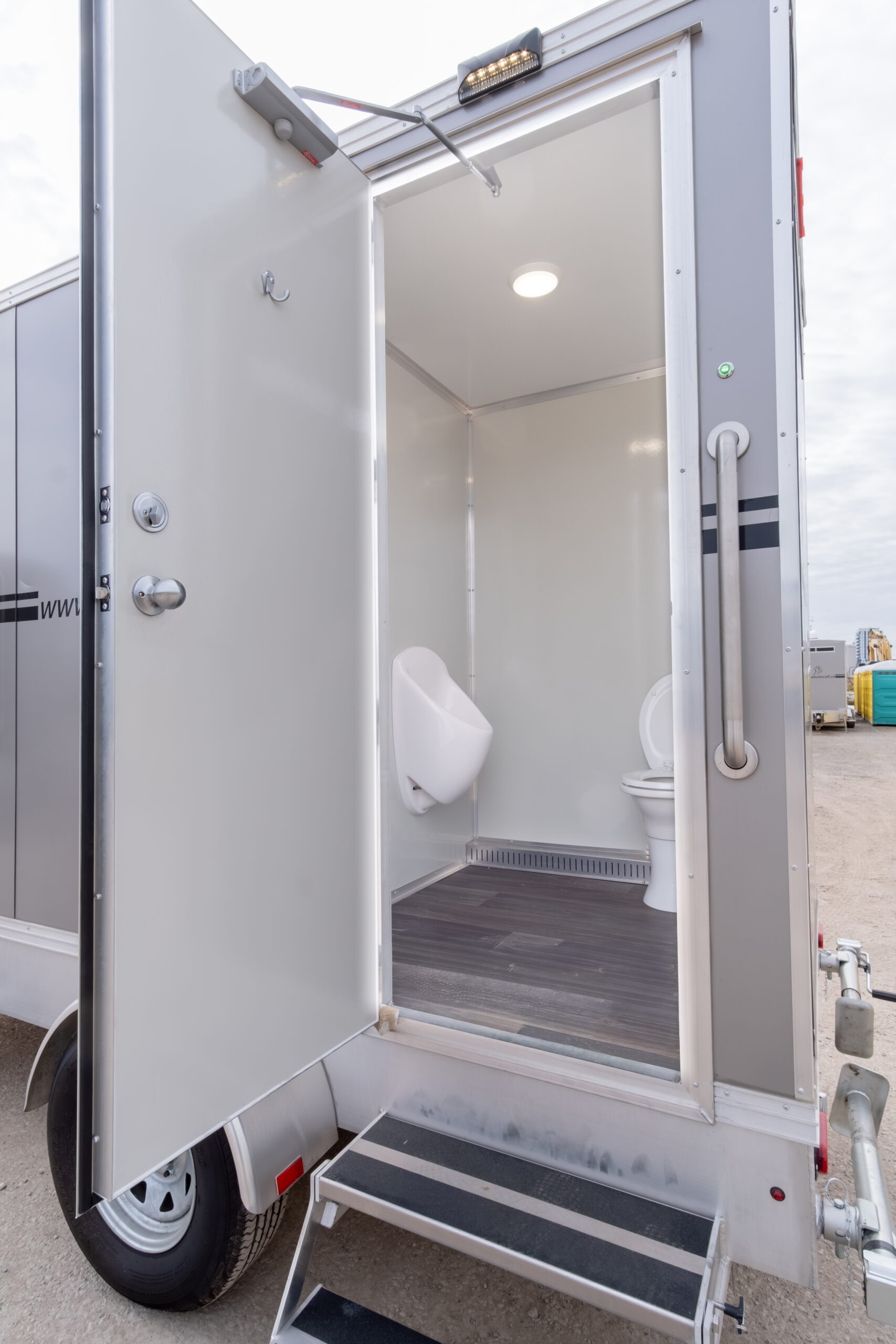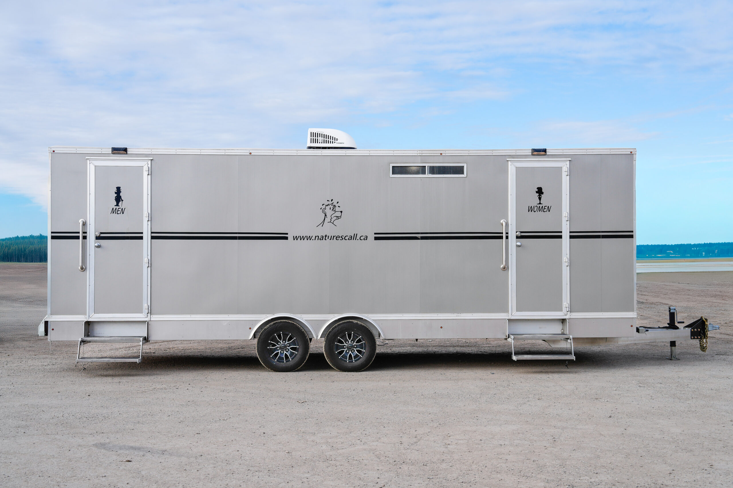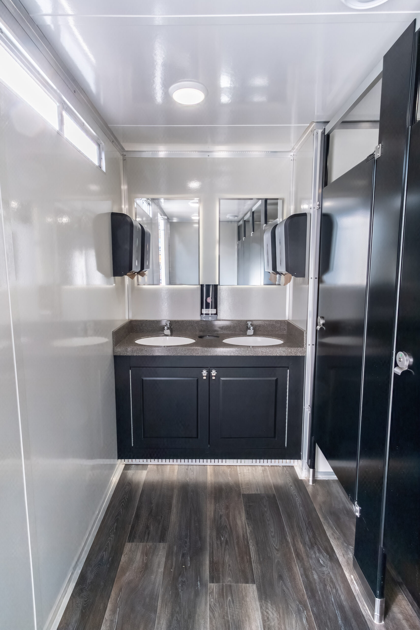 Enjoy surprising comfort and luxury in our Elegance 300 Mobile Restroom Suite featuring elegant interior styling and advanced interior and exterior construction. This luxury washroom trailer is only one example of the Luxury restroom suites Nature’s Call has to offer.