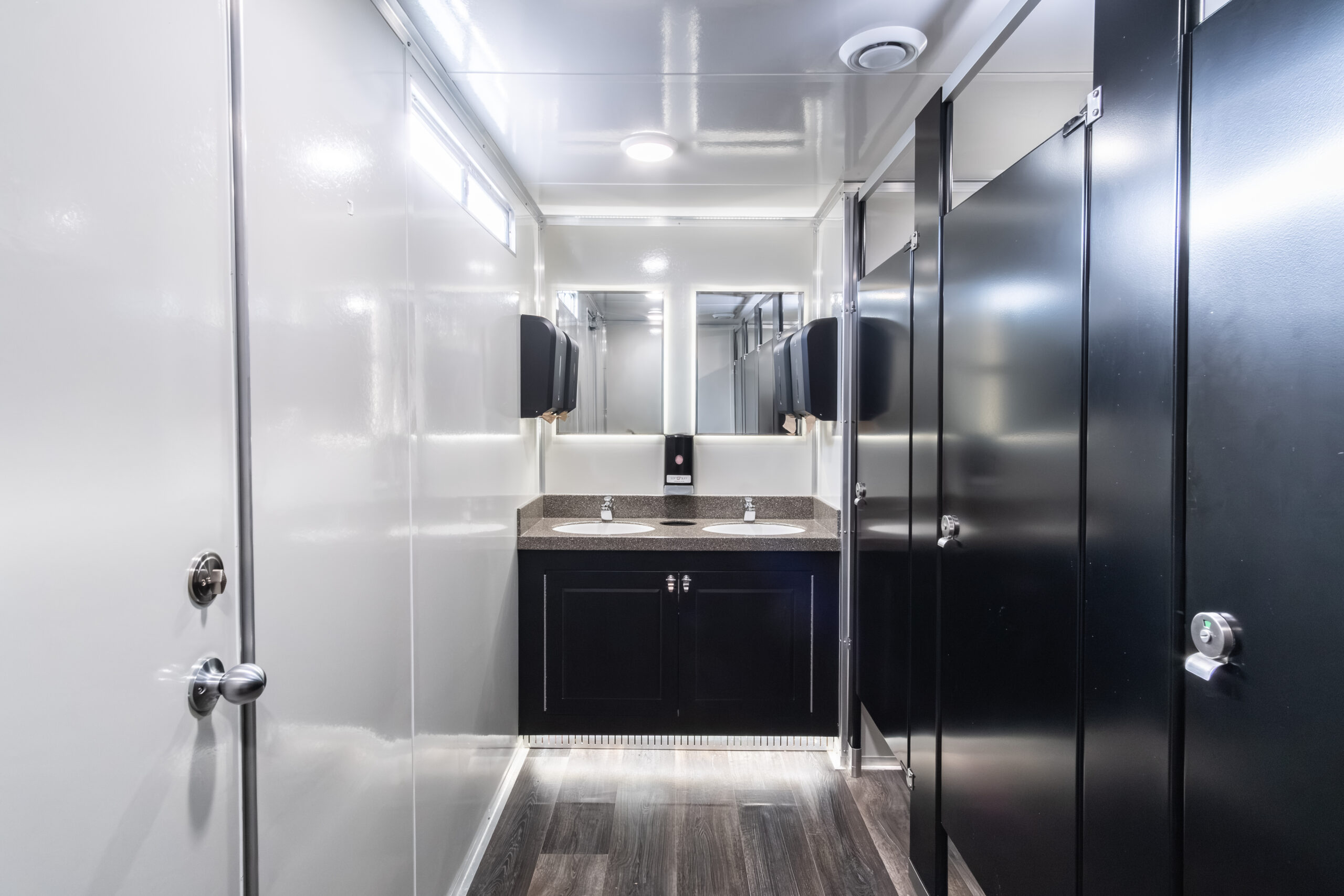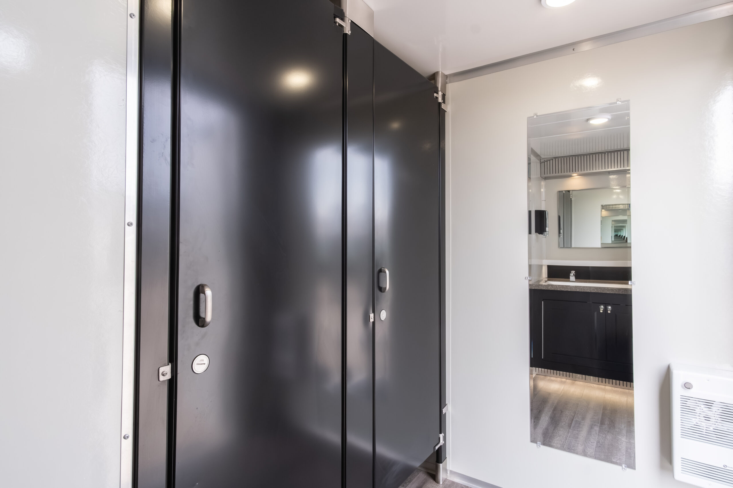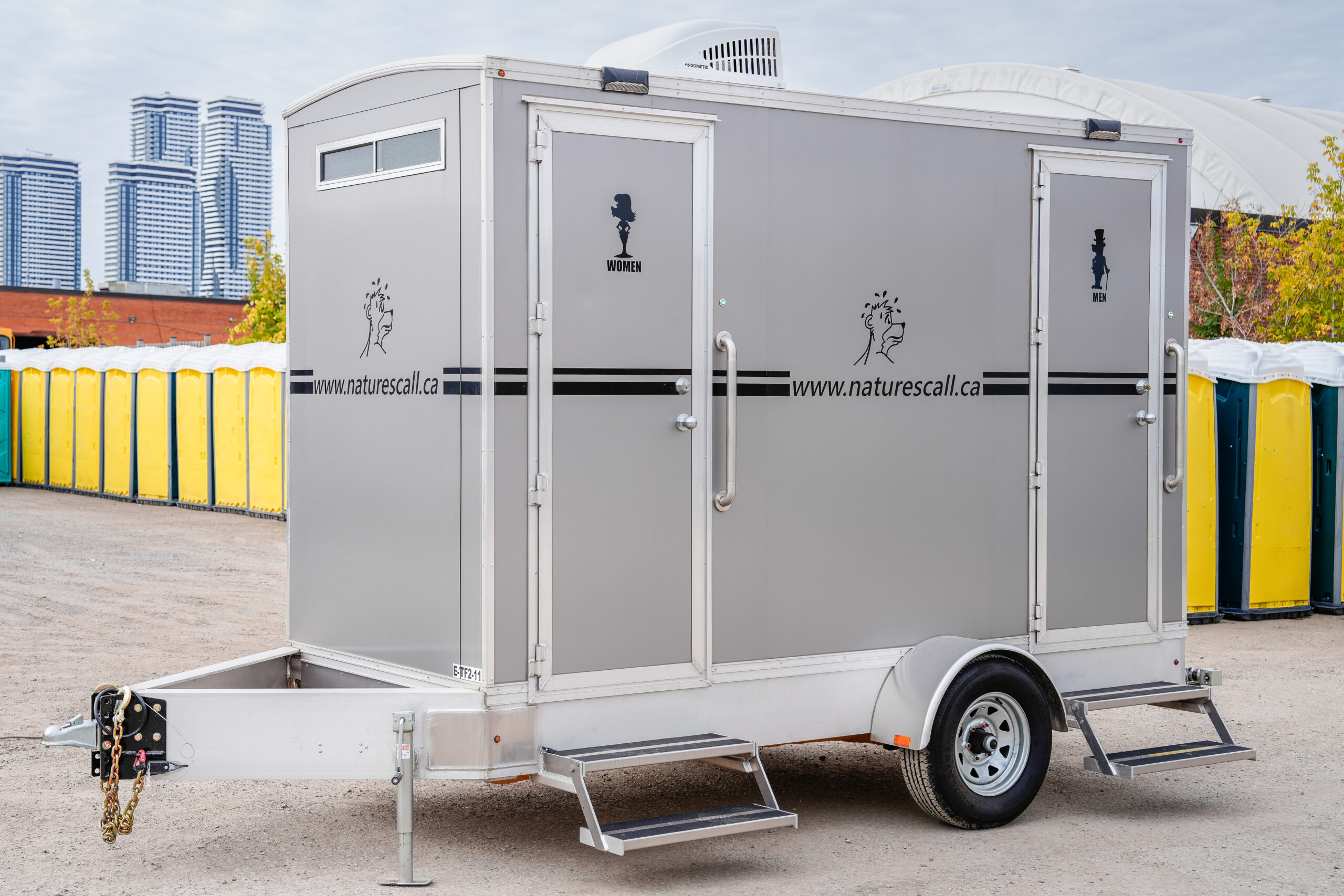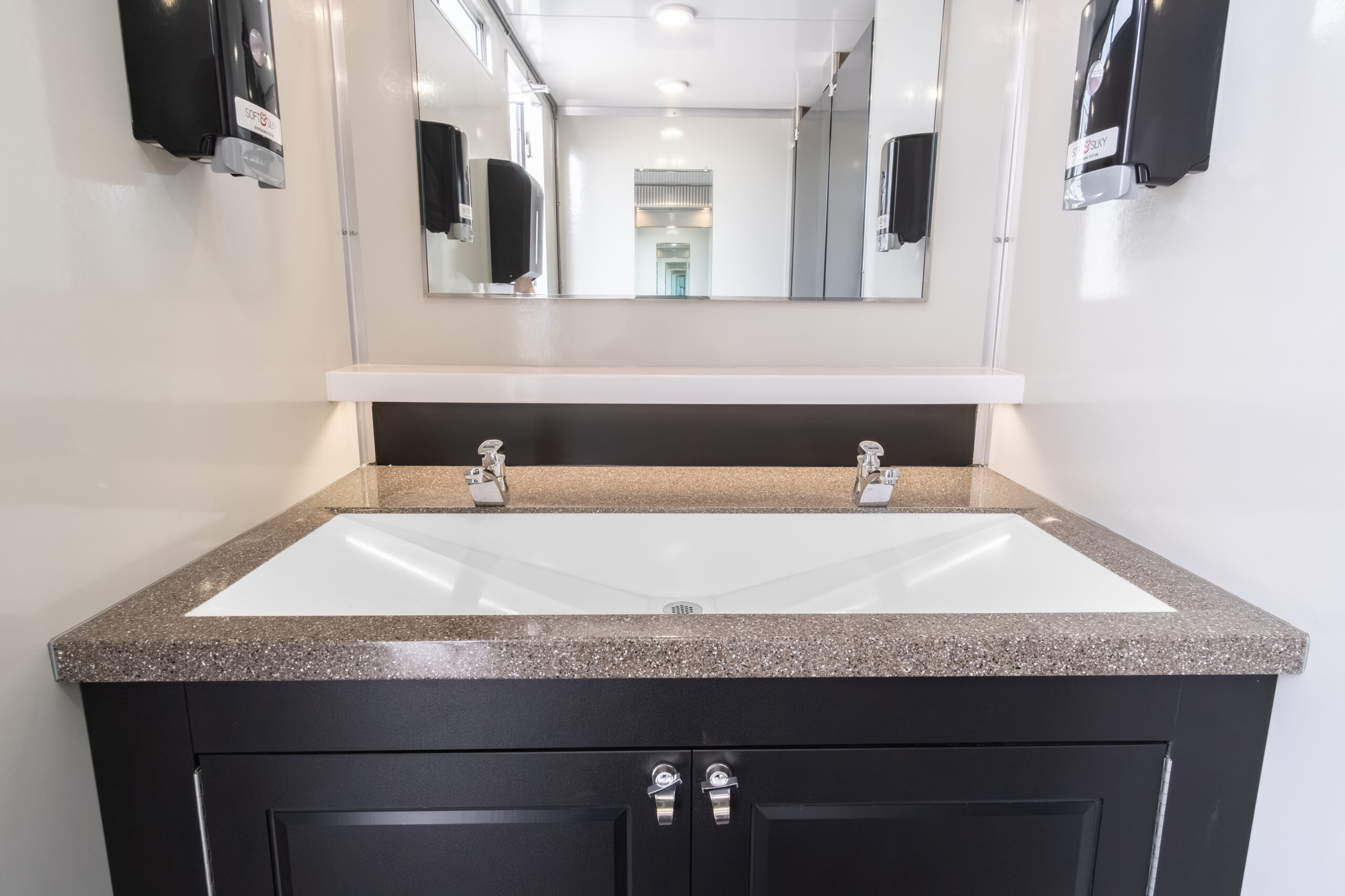 Enjoy surprising comfort and luxury in our Elegance 300 Mobile Restroom Suite featuring elegant interior styling and advanced interior and exterior construction. This luxury washroom trailer is only one example of the Luxury restroom suites Nature’s Call has to offer.