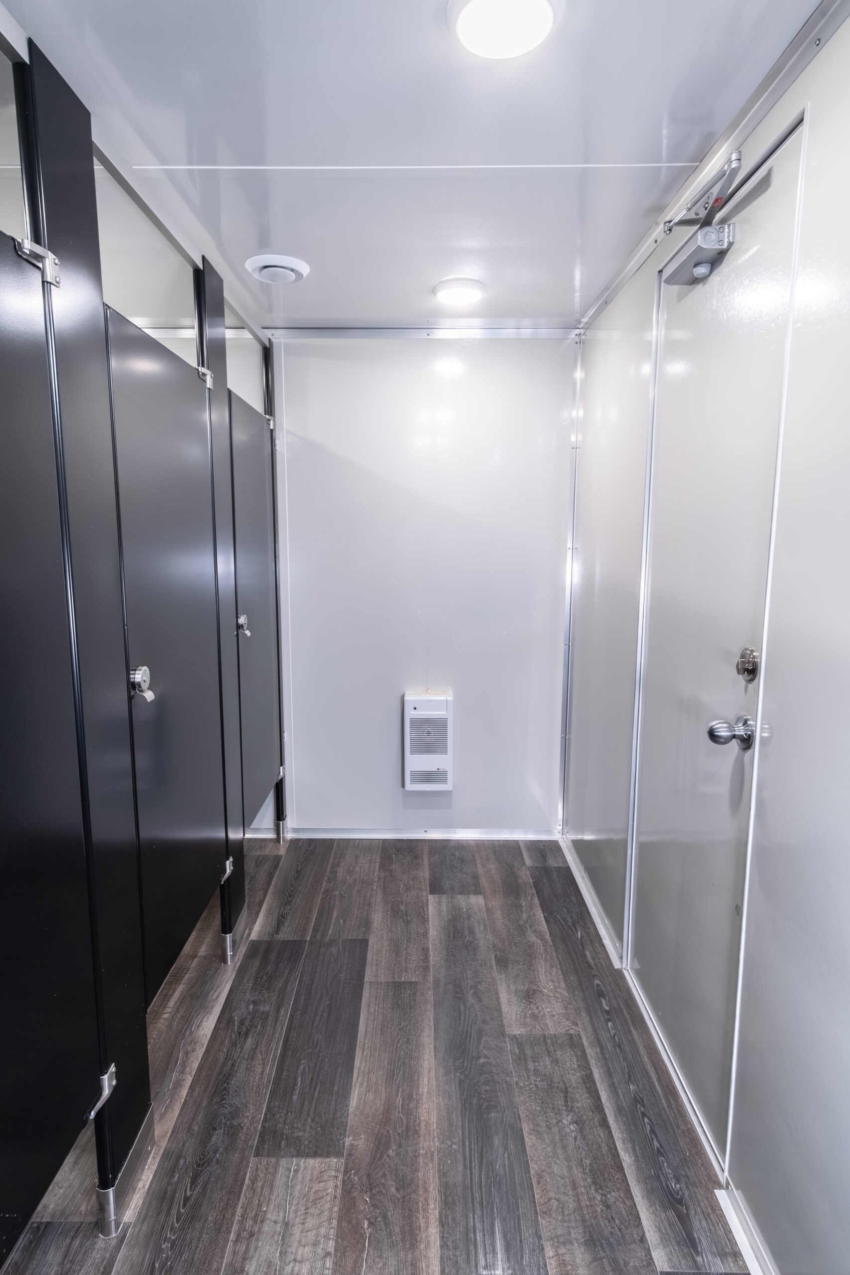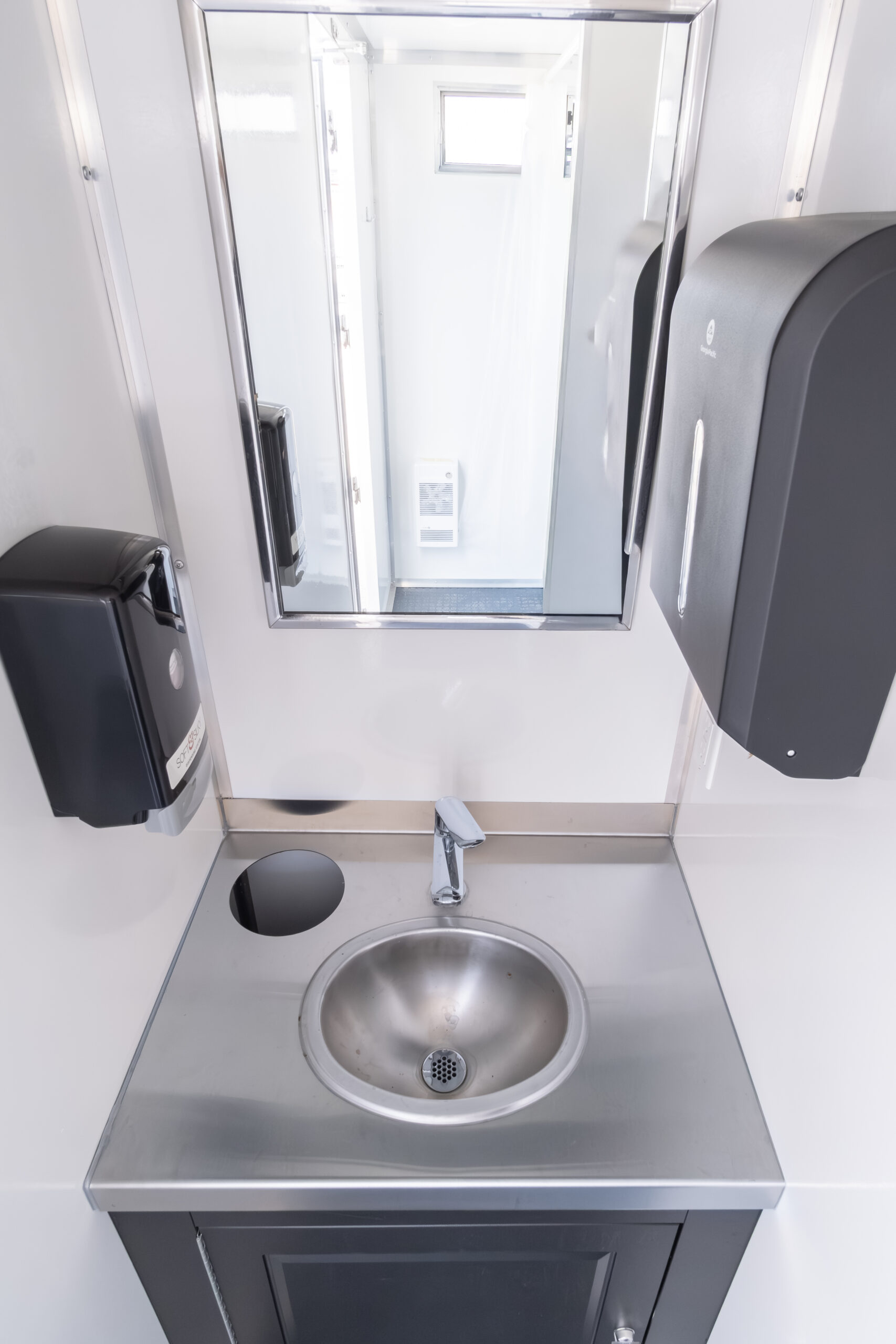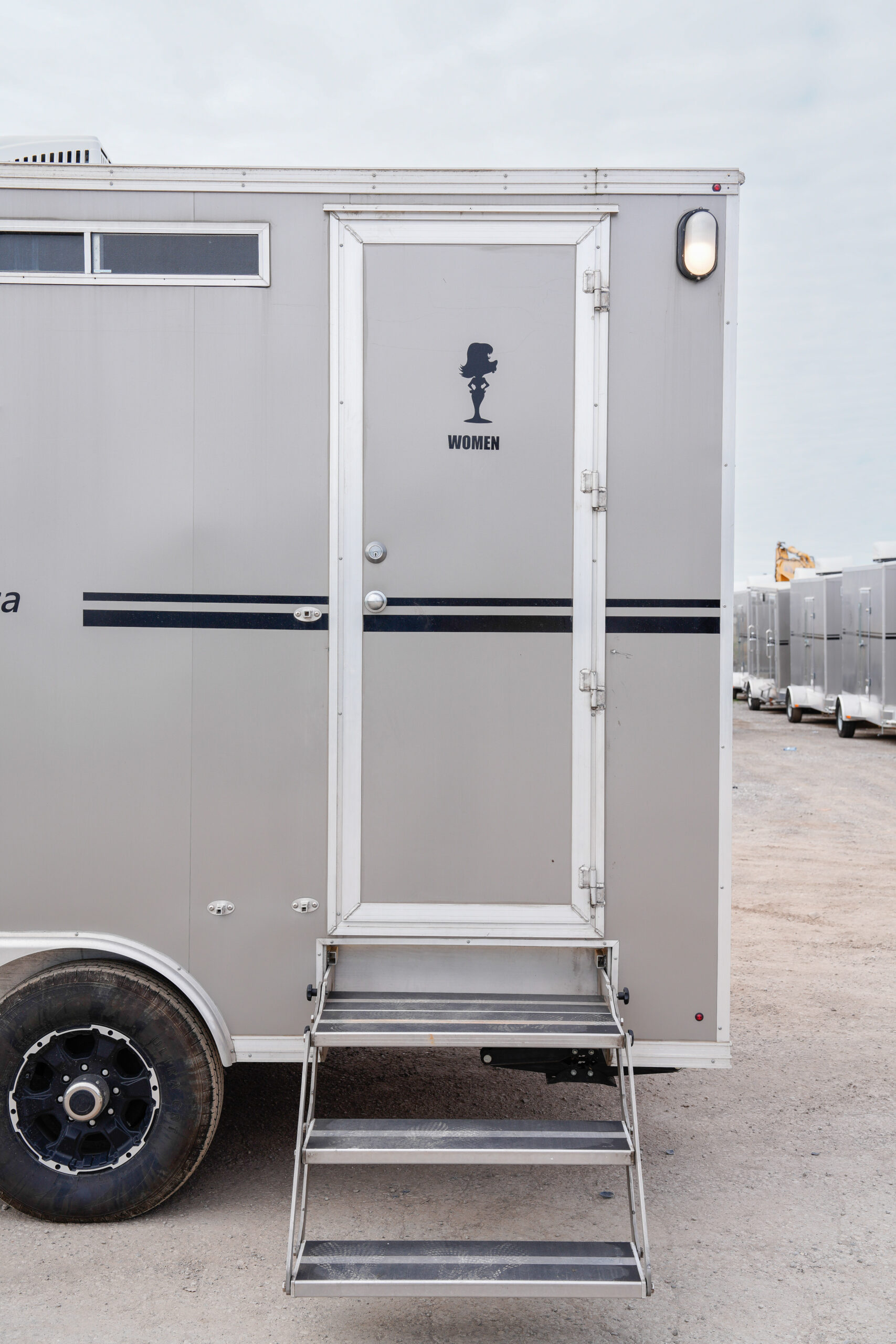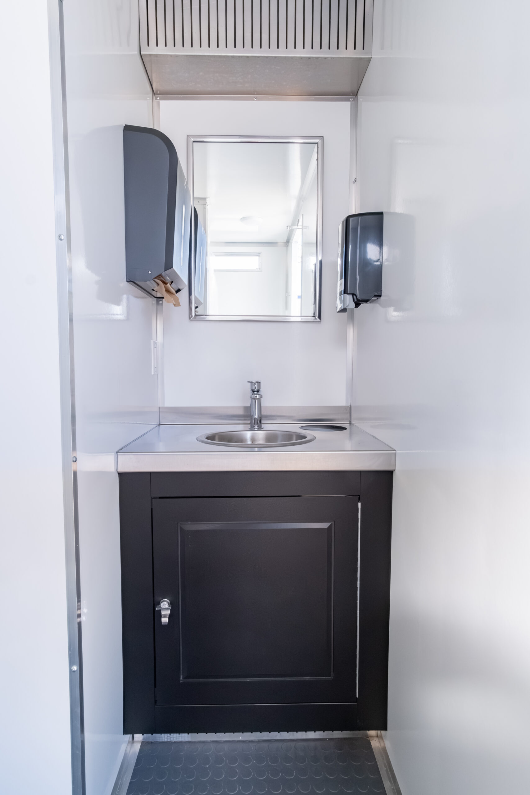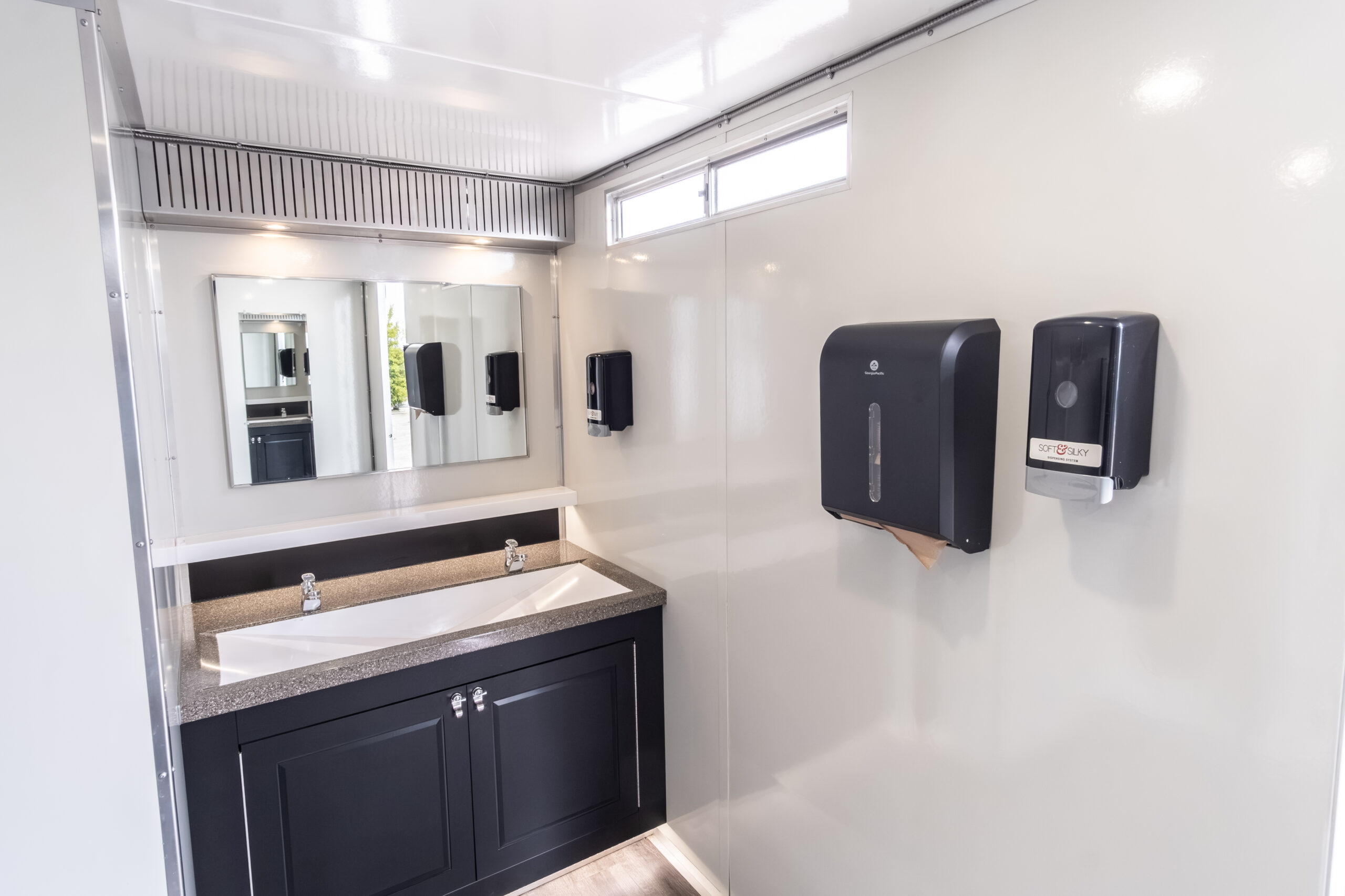 Enjoy surprising comfort and luxury in our Elegance 300 Mobile Restroom Suite featuring elegant interior styling and advanced interior and exterior construction. This luxury washroom trailer is only one example of the Luxury restroom suites Nature’s Call has to offer.