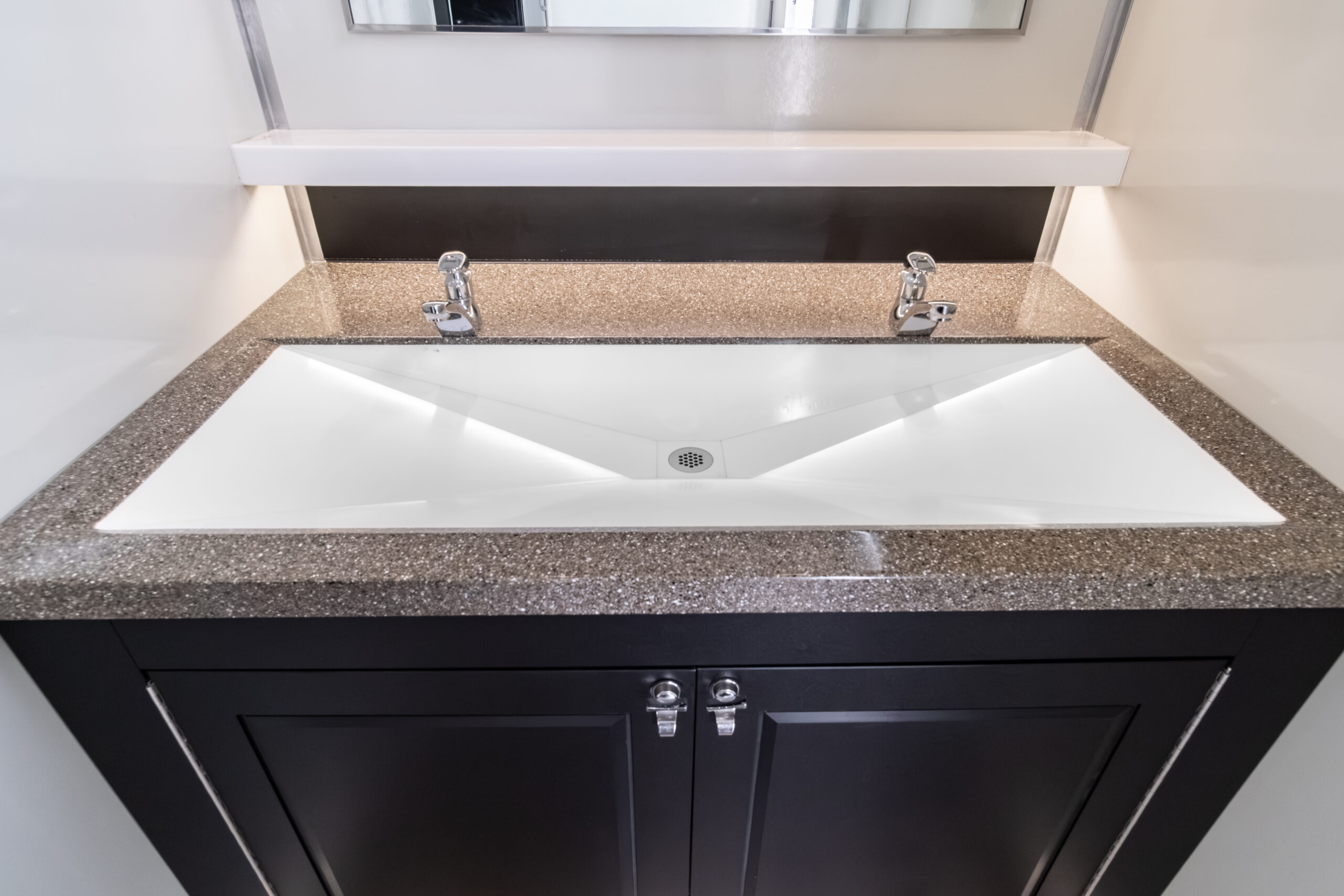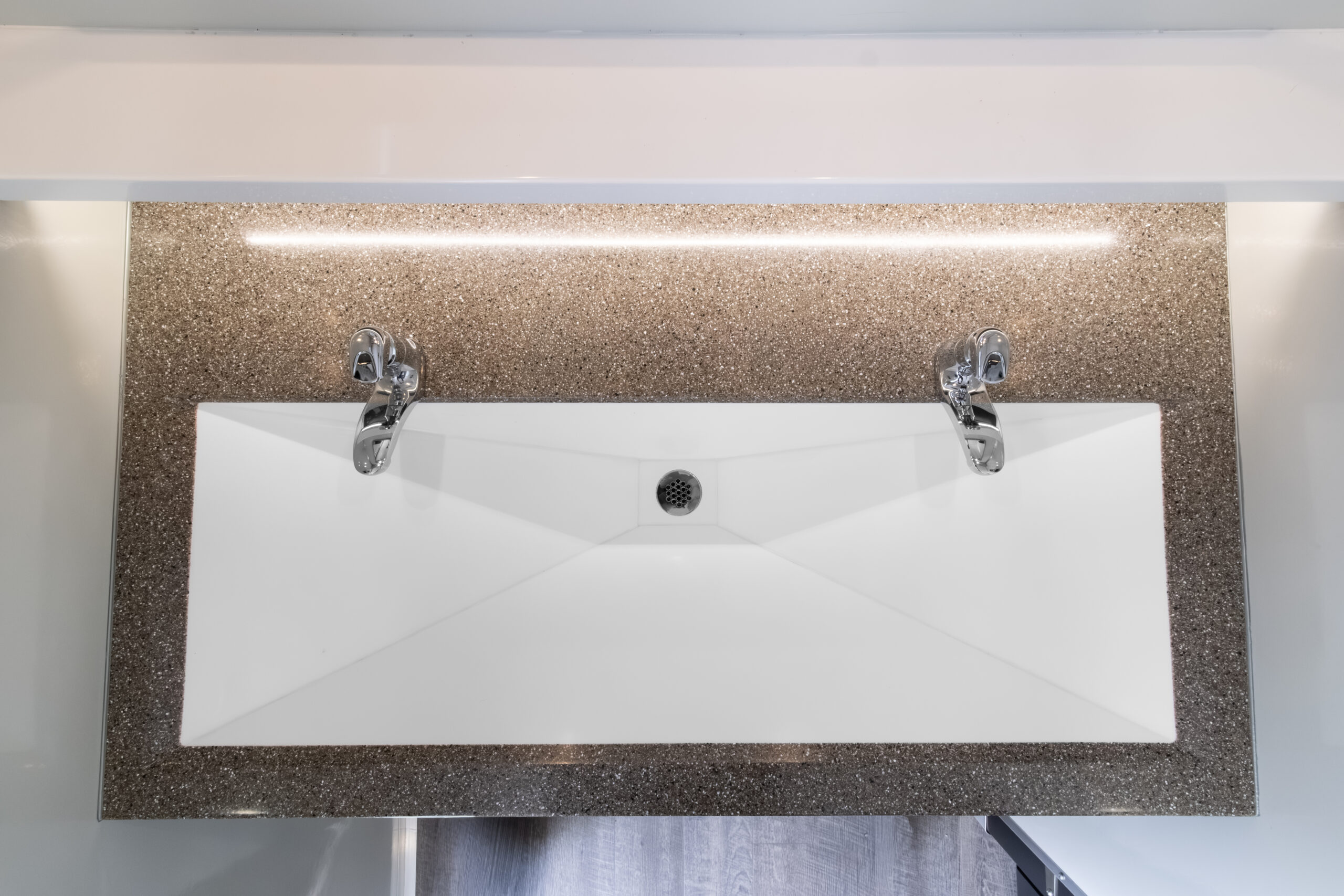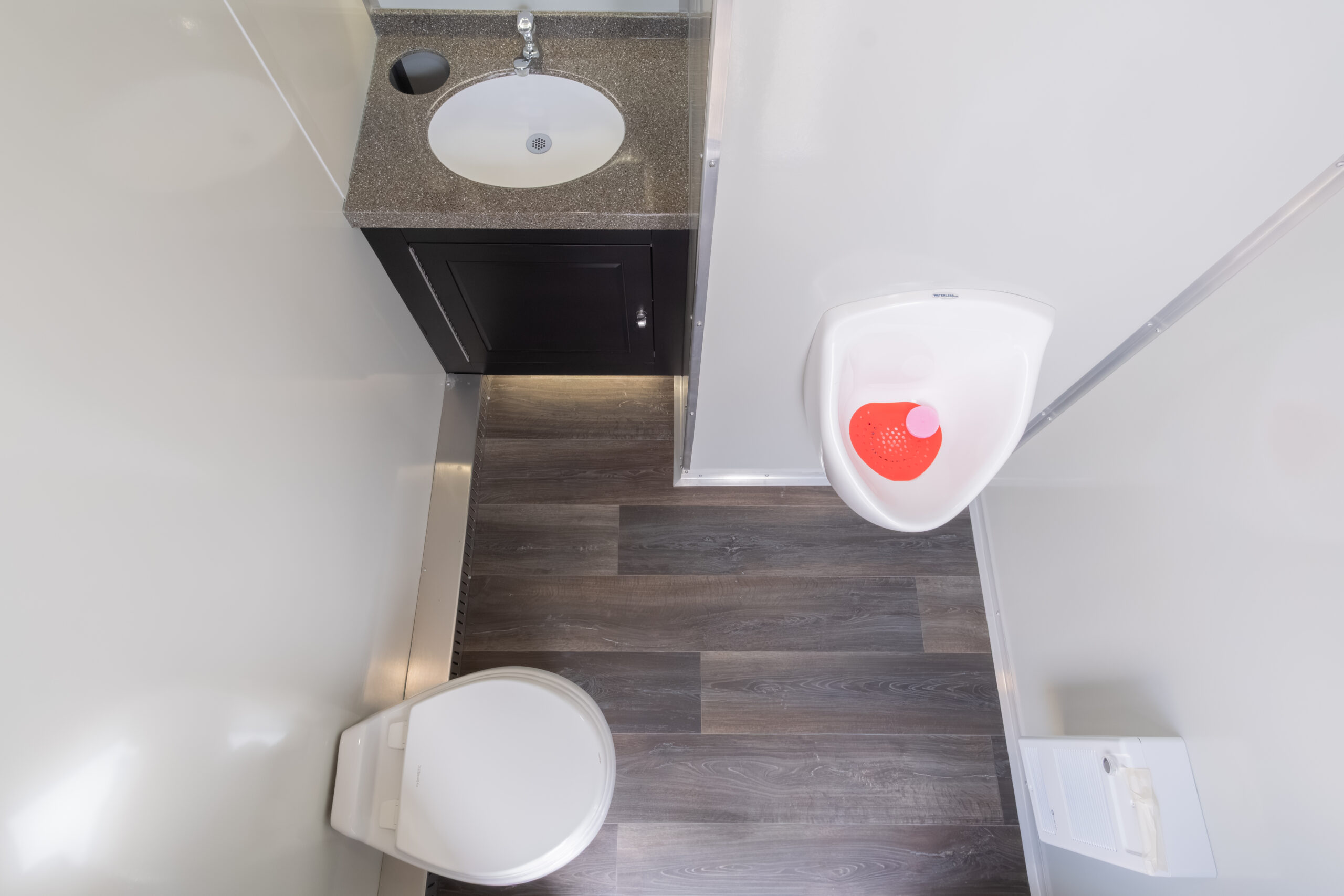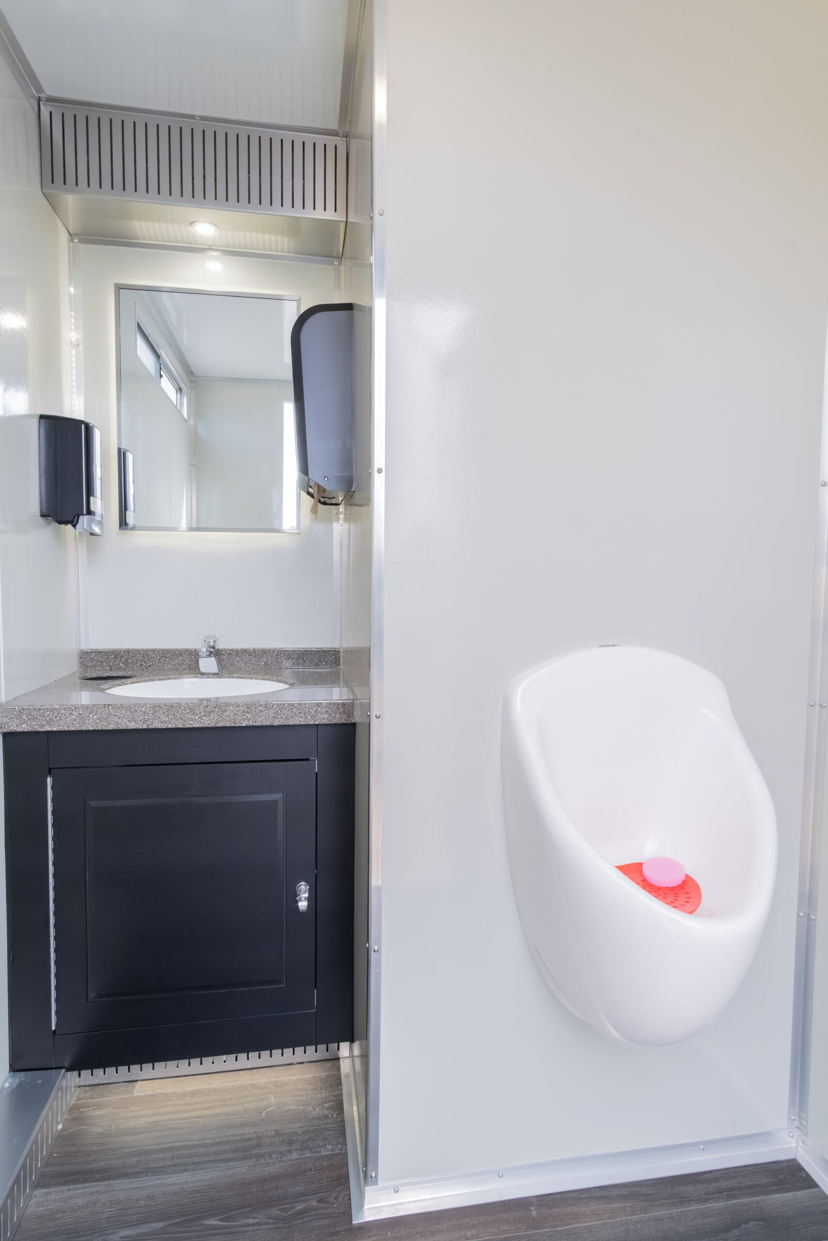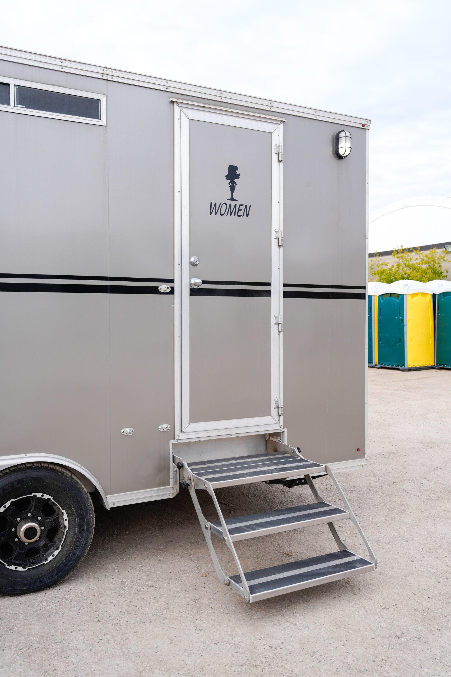 Enjoy surprising comfort and luxury in our Elegance 300 Mobile Restroom Suite featuring elegant interior styling and advanced interior and exterior construction. This luxury washroom trailer is only one example of the Luxury restroom suites Nature’s Call has to offer.