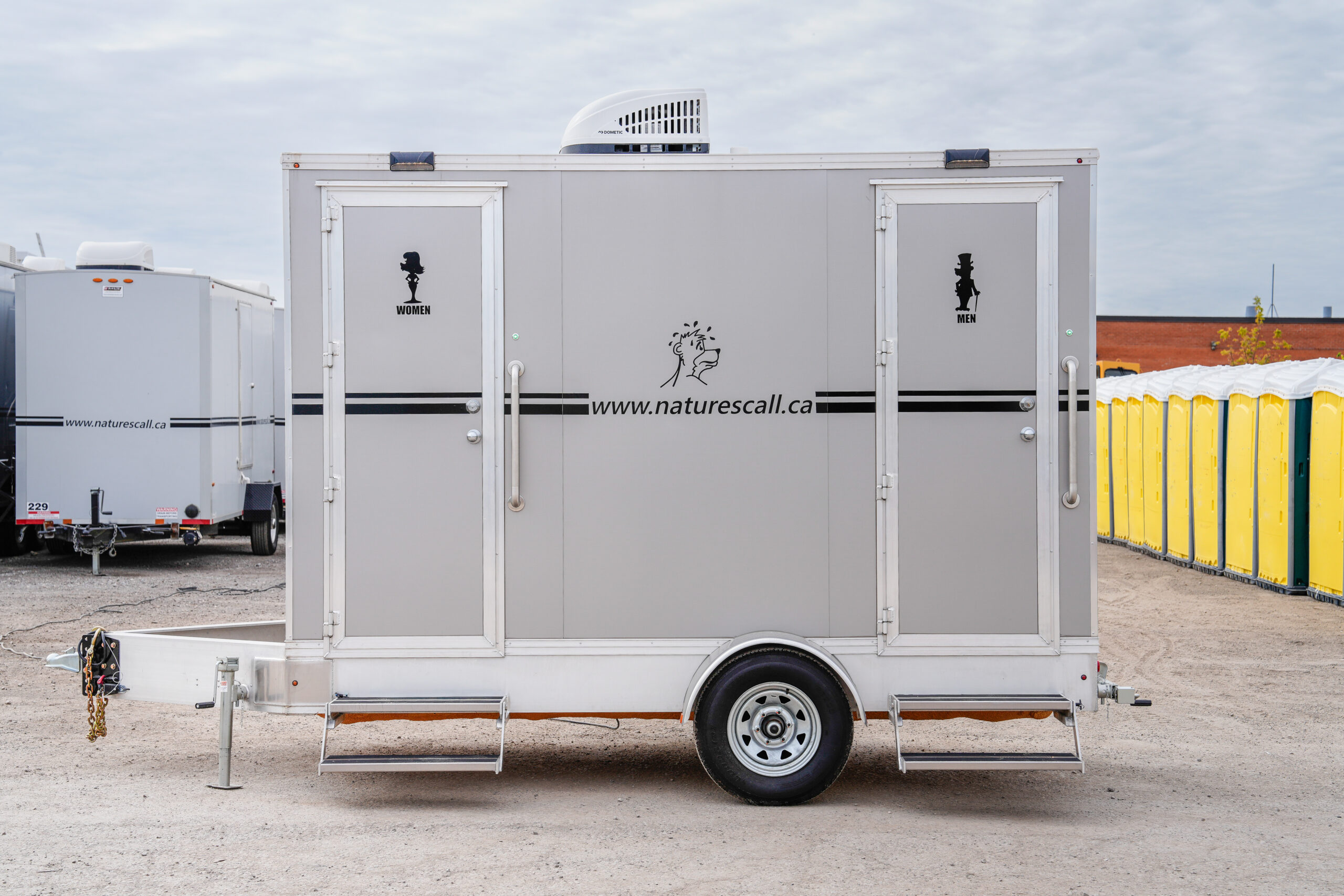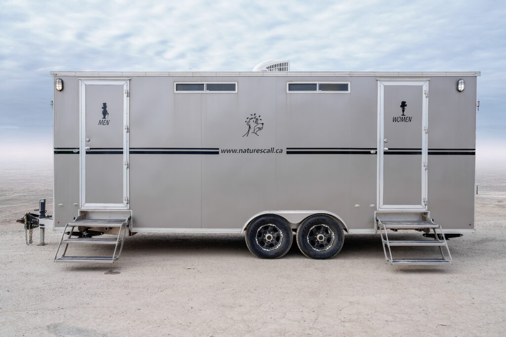 Revel in the surprising luxury and comfort of our Elegance 200 Mobile Restroom Suite. The Elegance 200 washroom trailer features very elegant interior styling and advanced interior and exterior construction. The Elegance 200 luxury washroom trailer is only one example of the Luxury restroom suites Nature’s Call has to offer.